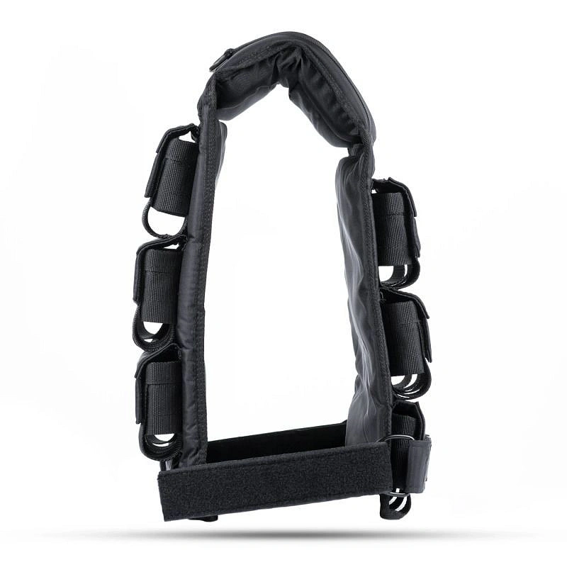 Szczególne wzmocnienie w strefie ramion sprawia, że nawet przy 30 kg kamizelka nie wbija się w ciało i nie powoduje dyskomfortu podczas ruchu.
