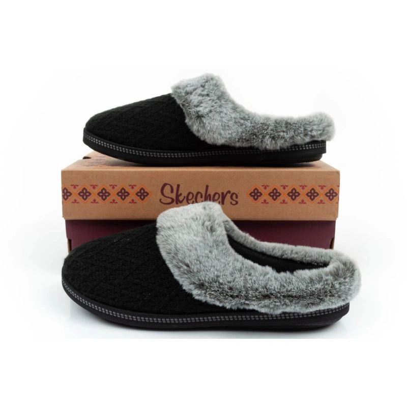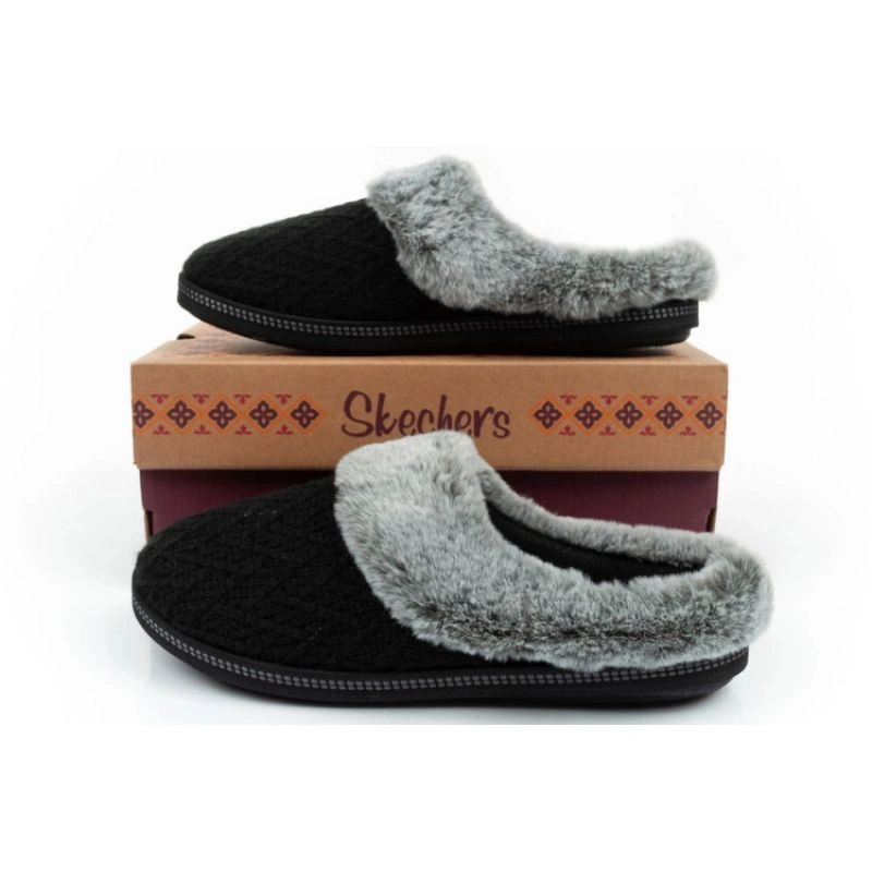 Właściwości: Damskie wsuwane kapcie marki Skechers. Buty wykonane z najwyższej jakości materiału te