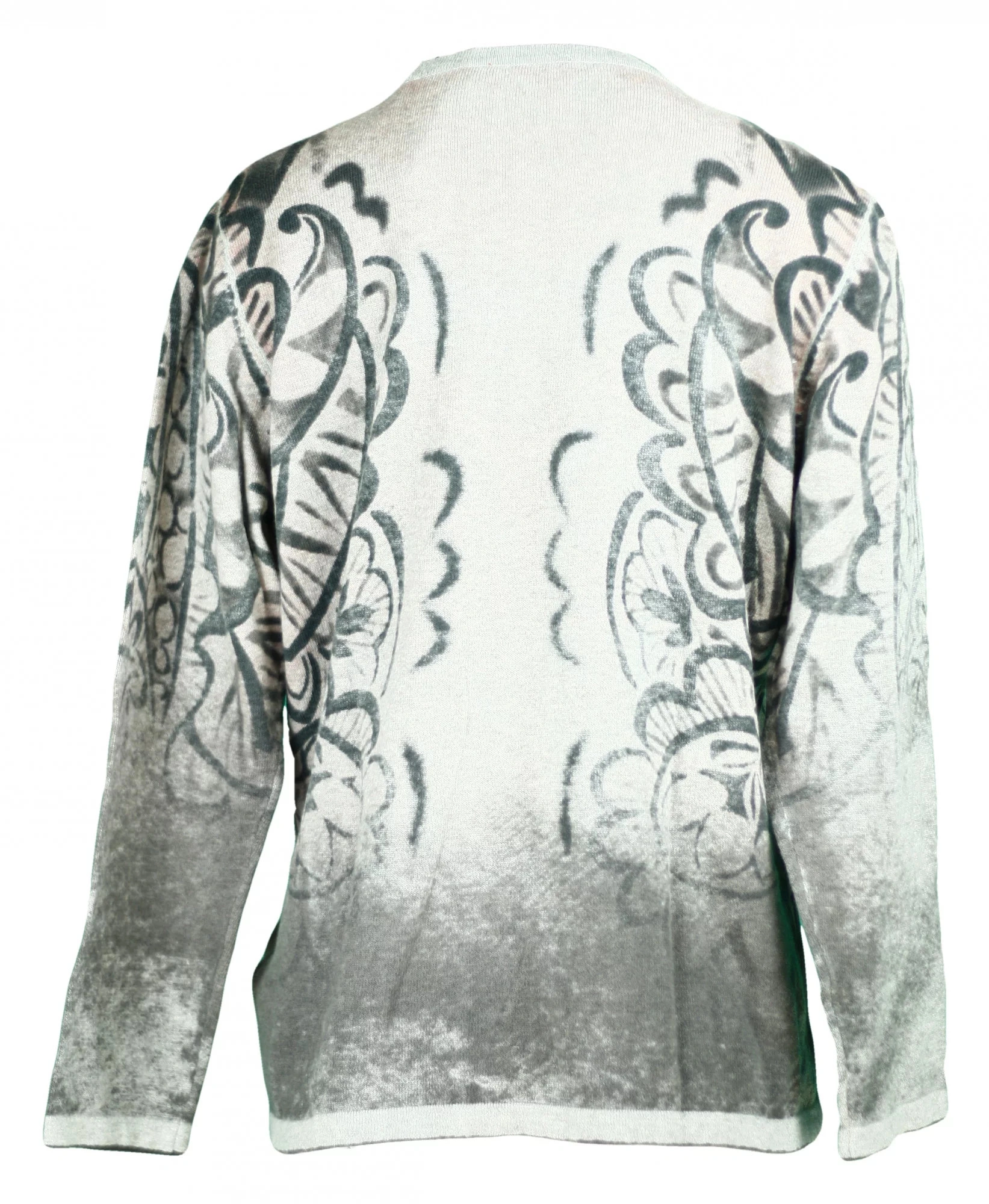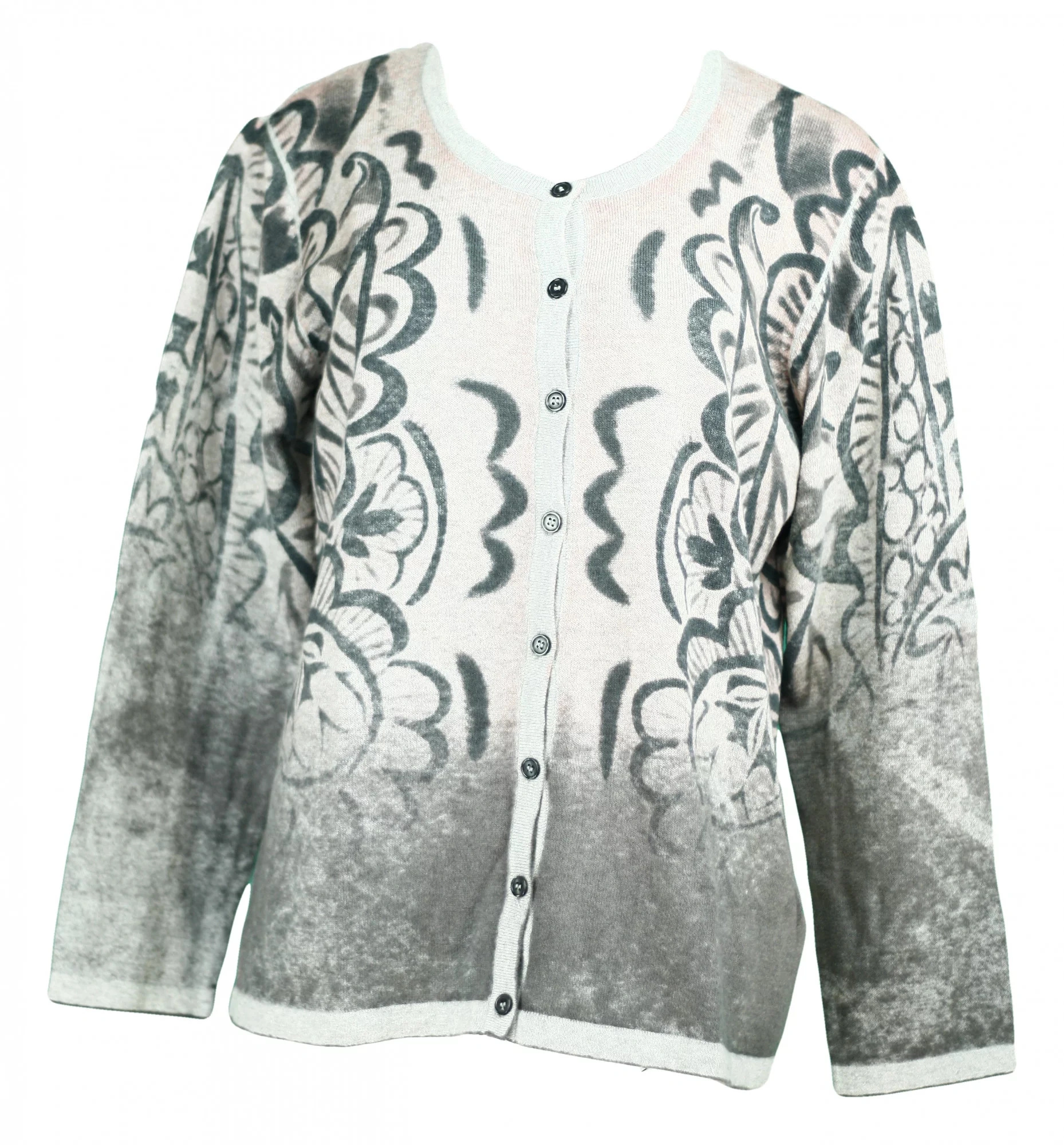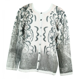 Damski kardigan z białą plisowaną falbaną i czarną wstążką SW 0202 - Gemini