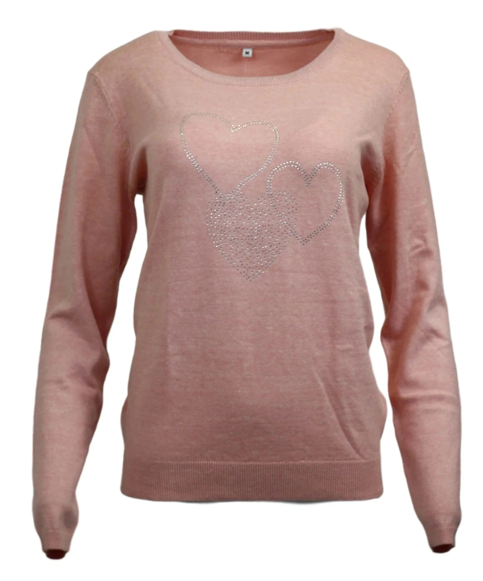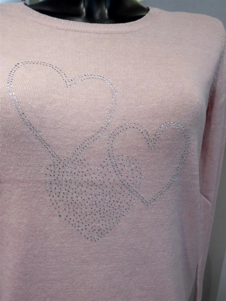 Sweter damski Rhodes, to lekki sweter z delikatną aplikacją z dżetów w postaci 3 serduszek.