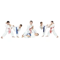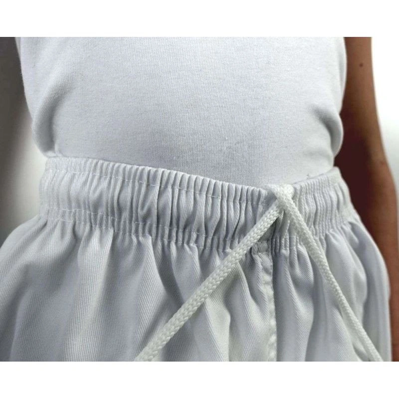 W spodniach kimona połączono tradycyjne wiązanie z dodatkową gumką ściągająca co w przypadku dzieci znacznie poprawia użytkowanie stroju zapobiegając zsuwaniu się spodni podczas treningu.