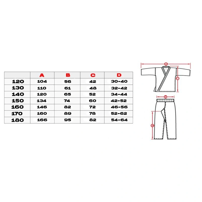 Parametry techniczne kimona dla dzieci DBX BUSHIDO Kids: