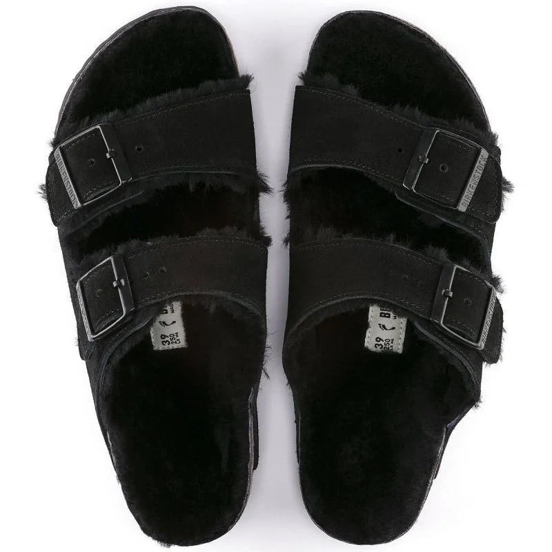 Opis Klapki damskie ocieplane z wełną owczą Birkenstock Arizona VL Shearling Black skóra zamszowa regular szerokie (0752661) dámské