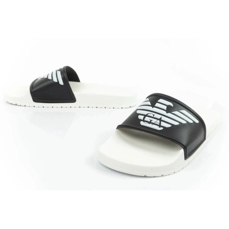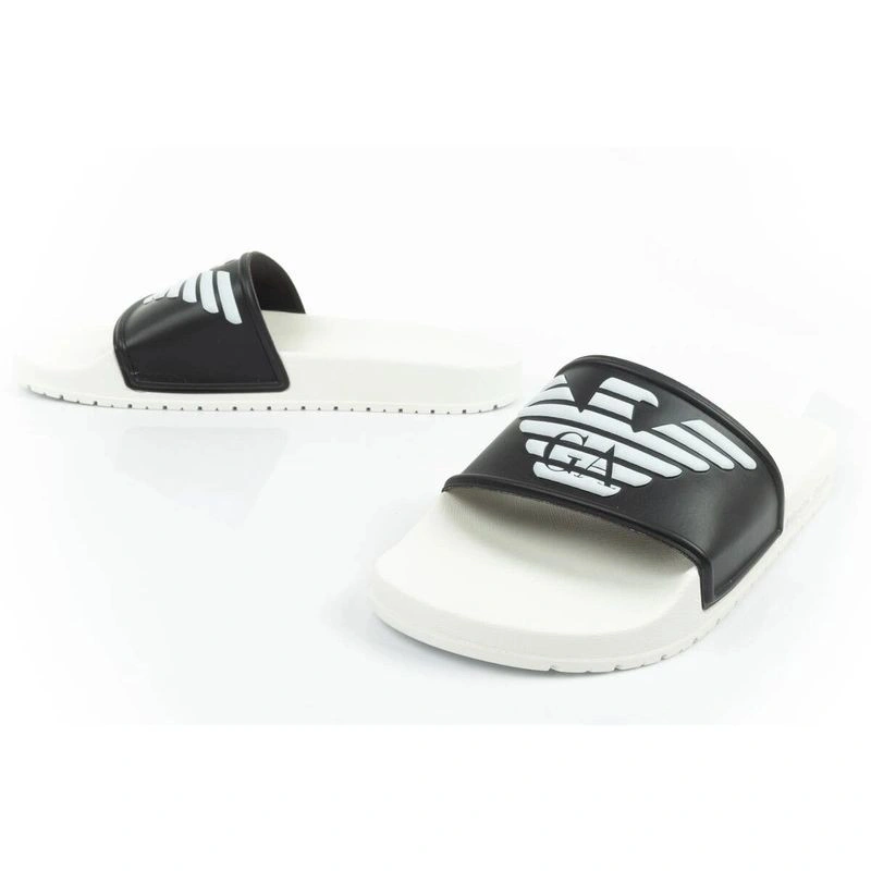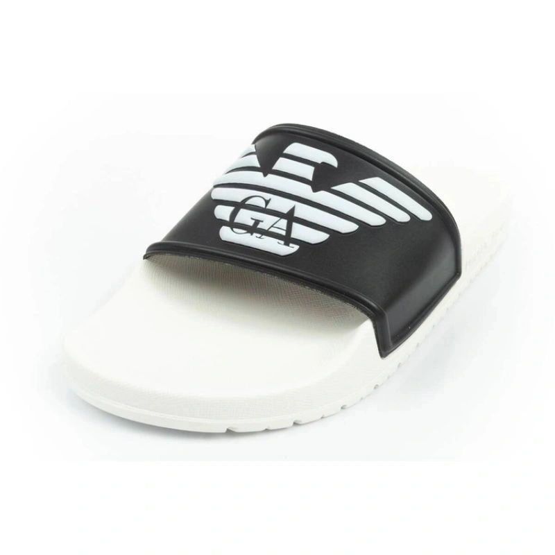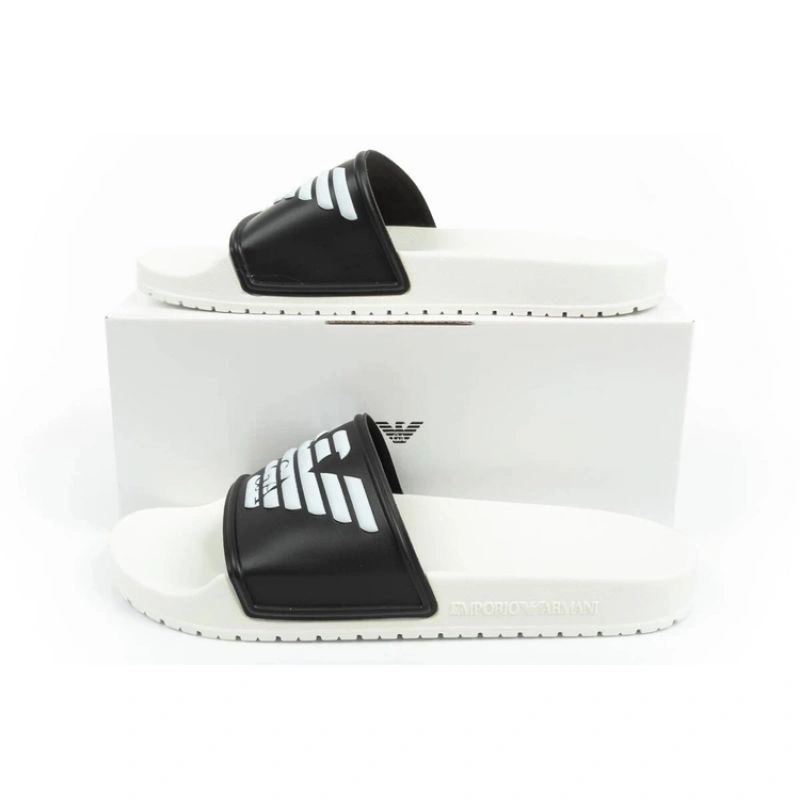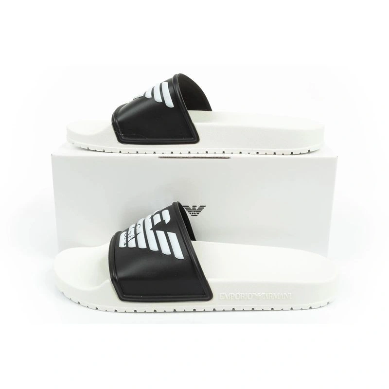 Właściwości: Męskie klapki marki Emporio Armani. Cholewka wykonana z najwyższej jakości materiału s