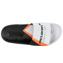 Sportowy design – biało-czarna kolorystyka z akcentami w odcieniu papai inspirowana jest estetyką McLaren, dodając klapkom dynamicznego charakteru.