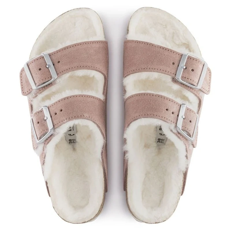 Opis Klapki ocieplane Birkenstock Arizona Suede Leather Shearling Pink Clay LAF wąskie narrow (1023258) dámské