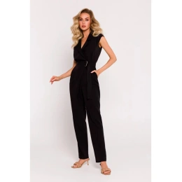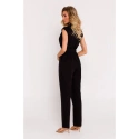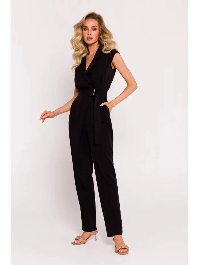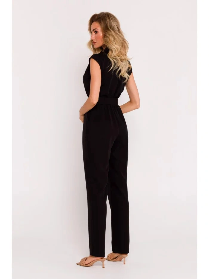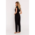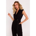 NFORMACE O PRODUKTU: tkaná látka jednodílný overal s asymetrickým vzorem zavinovací top bez rukávů s límcem a hlubokým výstřihem do V zúžené nohavice zapínání na patentky a skrytý zip vpředu částečně elastický pas boční kapsy pásek s přezkou náš model je vysoký 171 cm a nosí velikost S navrženo a vyrobeno v Polsku