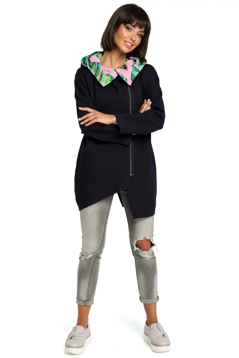 Ta oversizowa kurtka zapinana na zamek błyskawiczny jest ożywiona aksamitnie miękką kolorową podszewką w kapturze, kontrastującą z soczystymi lub subtelnymi kolorami kurtki. Wszystko to zapewnia całodzienny komfort i niezwykle modny casualowy wygląd. Wzór na drukowanych elementach może się różnić w zależności od układu poszczególnych elementów.