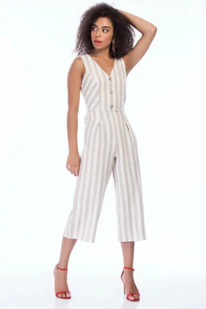 Kombinezon damski DS18YB351228 - SEVENHILL ecru-mocha L