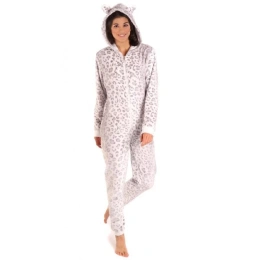 Idealny damski kombinezon Vestis Irbis w panterkę z kapturem.