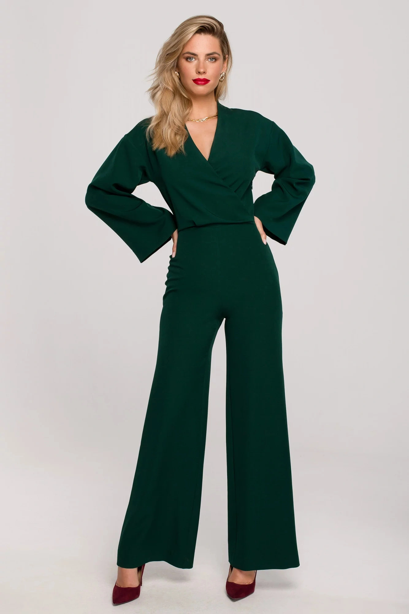 Nie ma nic bardziej idealnego niż ten elegancki jednoczęściowy kombinezon. Z zawijaną bluzką, szerokimi rękawami i spodniami będą miłą alternatywą dla sukienek wieczorowych.