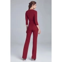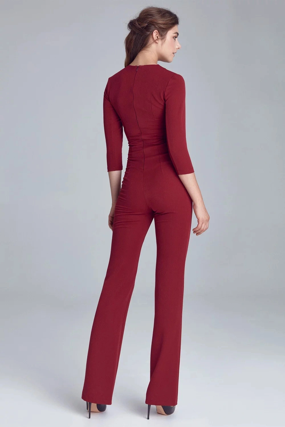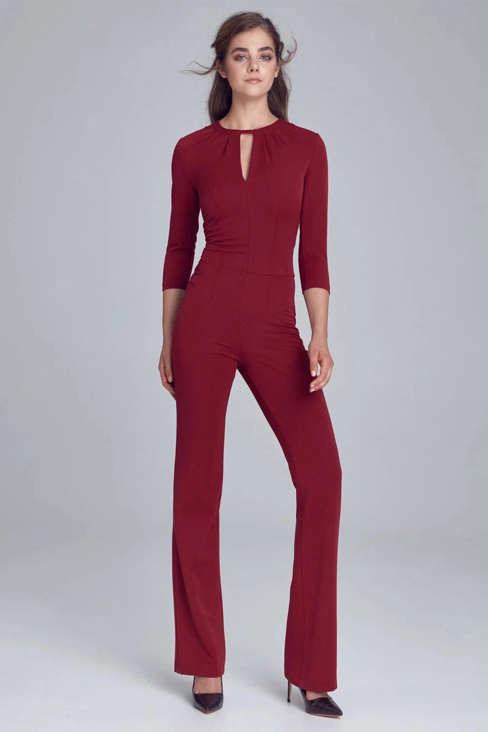 Kombinezon damski M672 - Figl - z kopertowym dekoltem - rękawy 3/4 - talia z fałdami - kieszenie boc