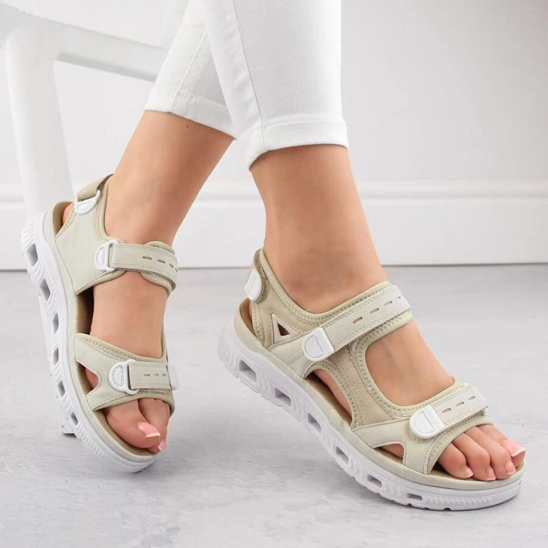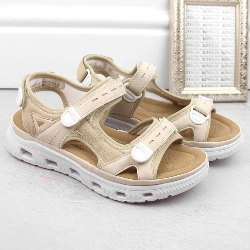 Komfortowe sandały na rzepy Rieker W RKR691 beżowe Właściwości: sandały marki Rieker doskonałe na l