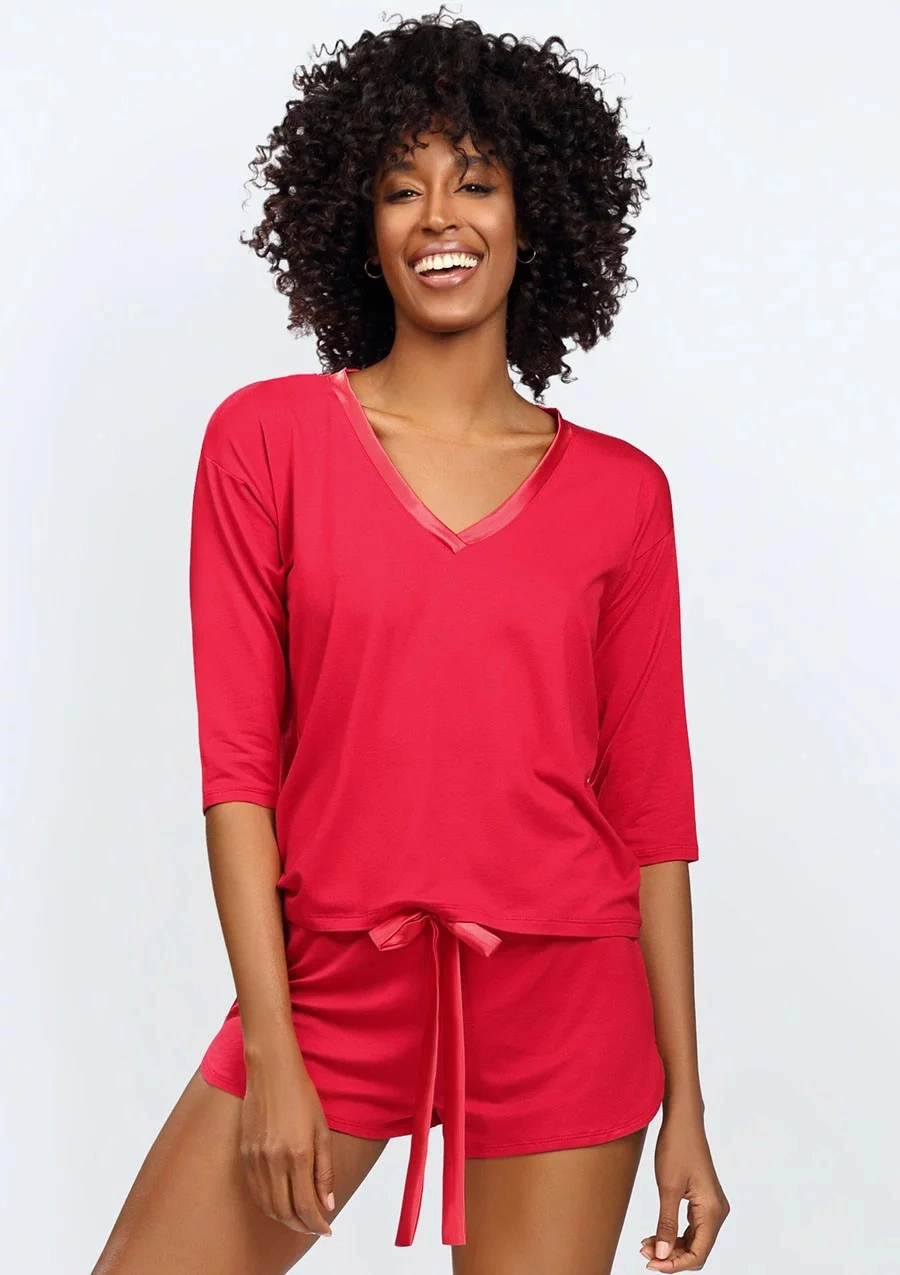 - koszulka ma rękawy 3/4 z dekoltem w kształcie litery V