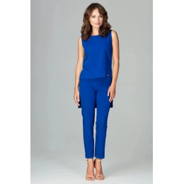 - komplet składający się z bluzki bez rękawów z przedłużonym tyłem i klasycznych spodni z podwiniętymi nogawkami