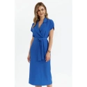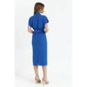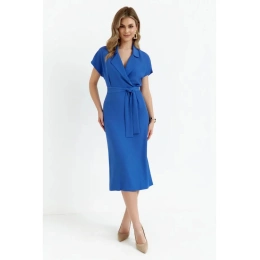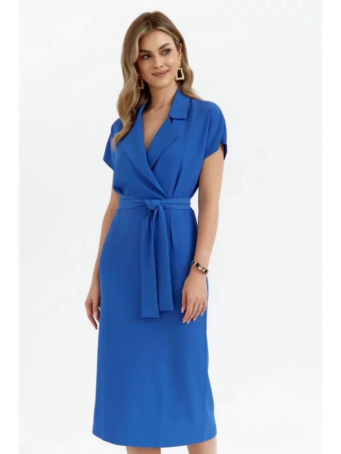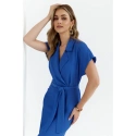 95% poliester 5% elastan SZCZEGÓŁY PRODUKTU: sukienka koszulowa z tkaniny z kołnierzykiem zawijany top z krótkimi rękawami nietoperz ołówkowa spódnica do połowy długości częściowo elastyczna talia długość poniżej kolan rozcięcia na plecach bez podszewki pasek do wiązania nasza modelka ma 176 cm wzrostu i nosi rozmiar S zaprojektowano i wykonano w Polsce