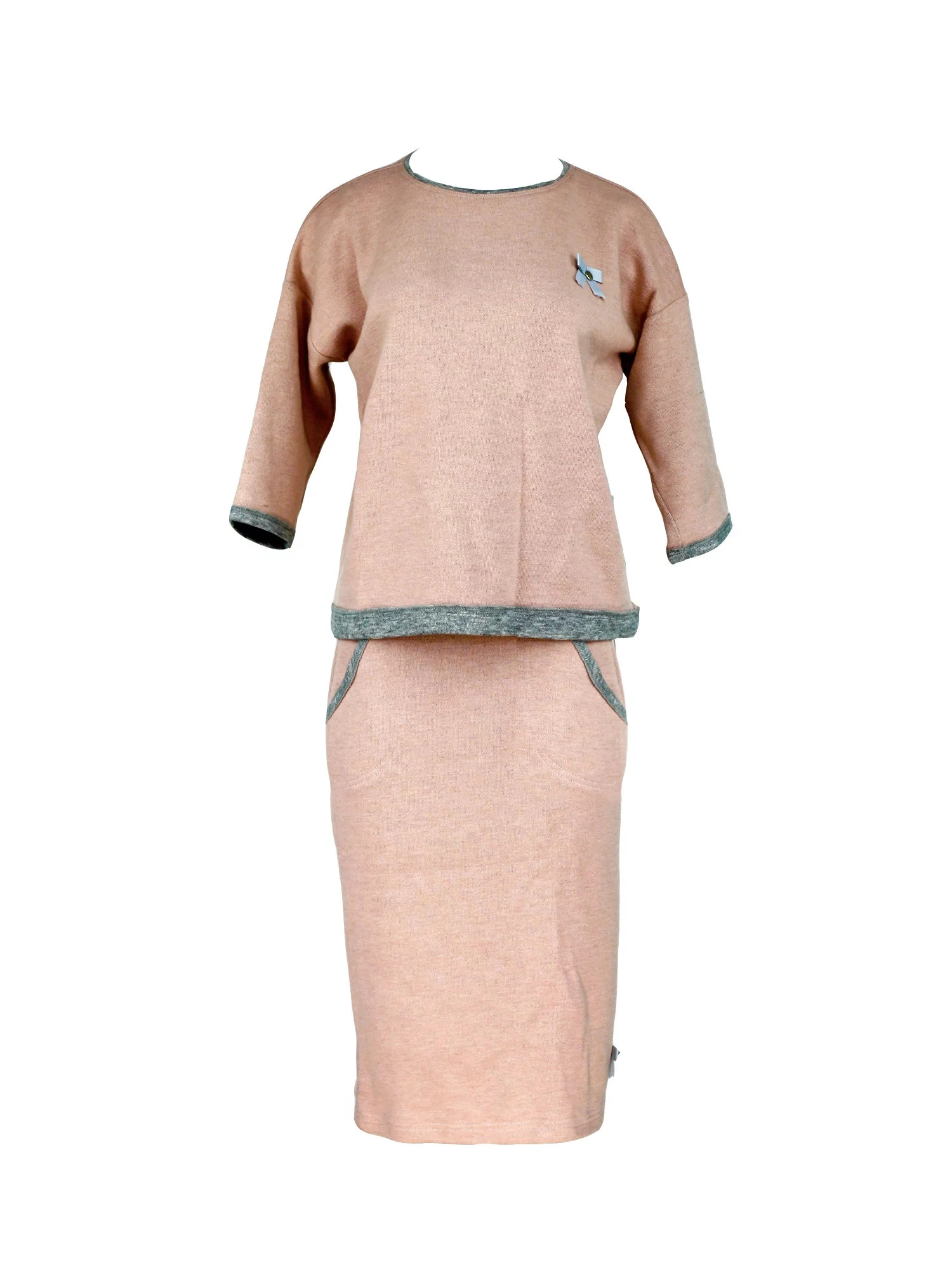 Kostium dzianinowy M36635 Obraz pudrowy z szarym 46