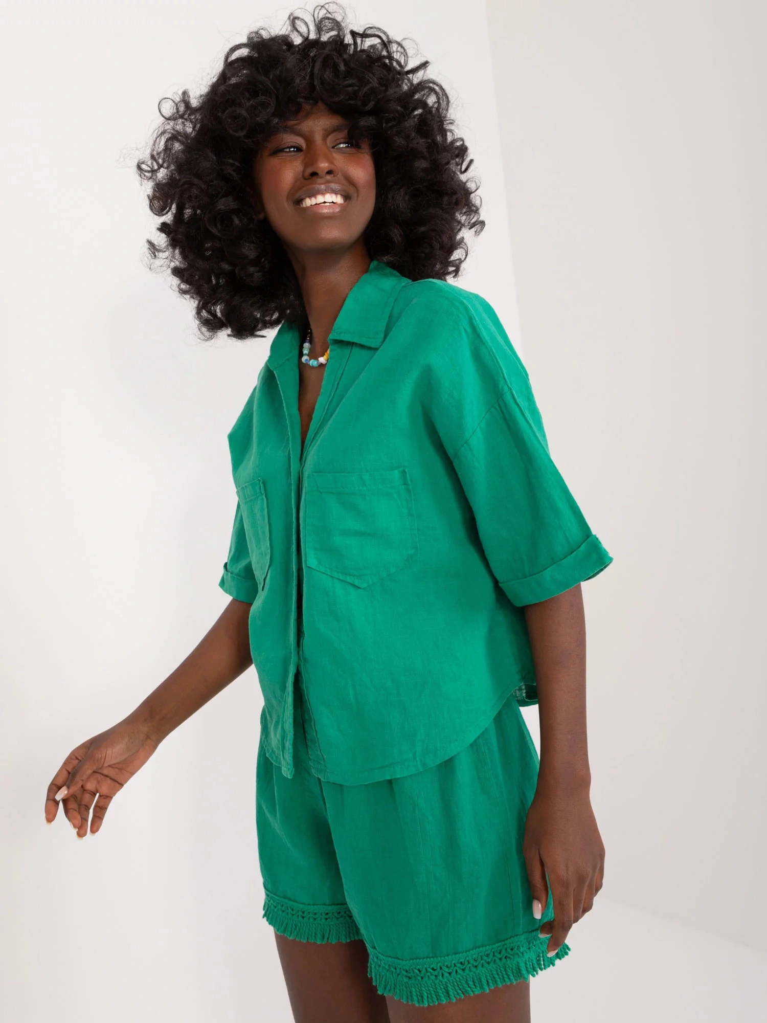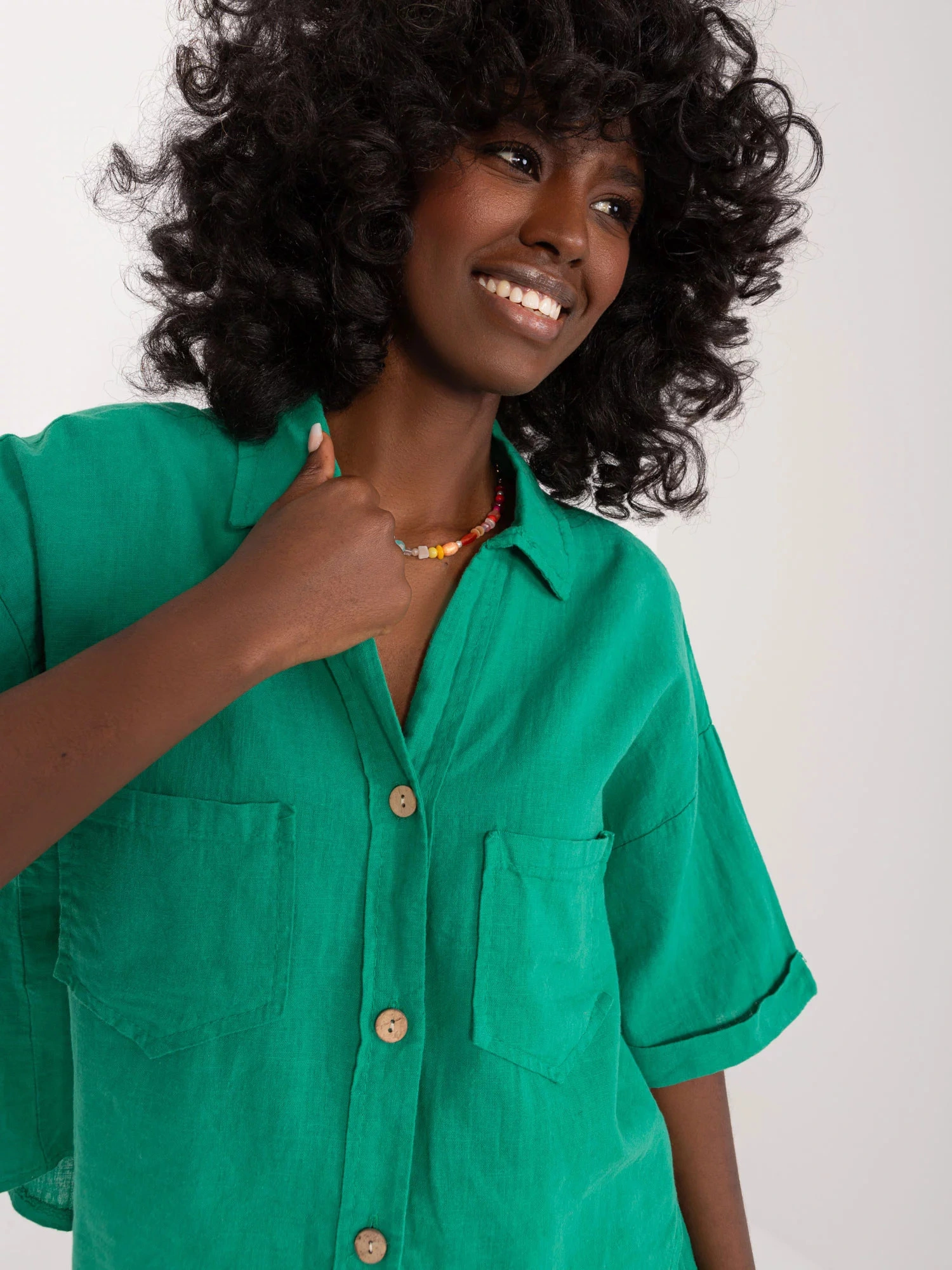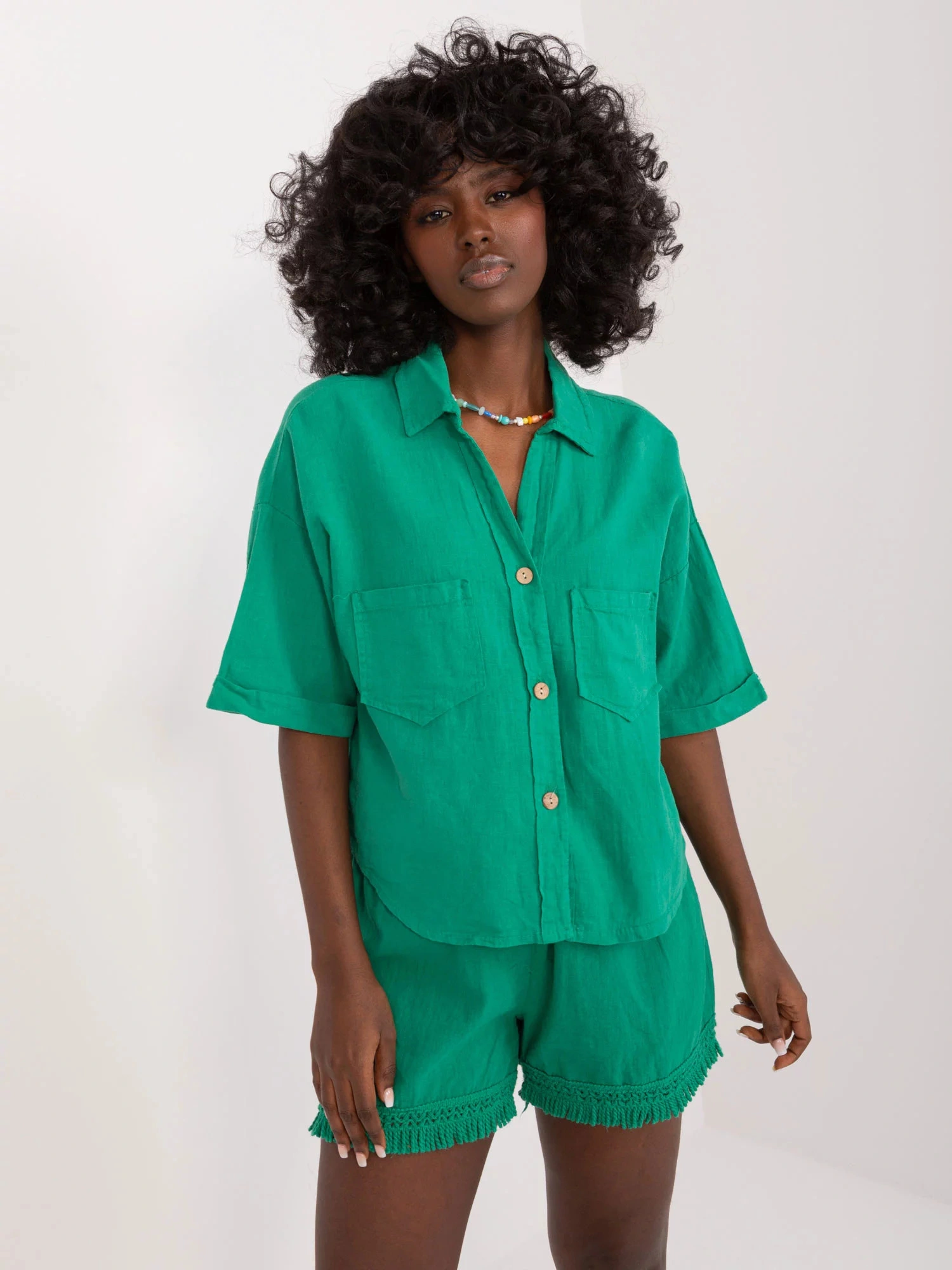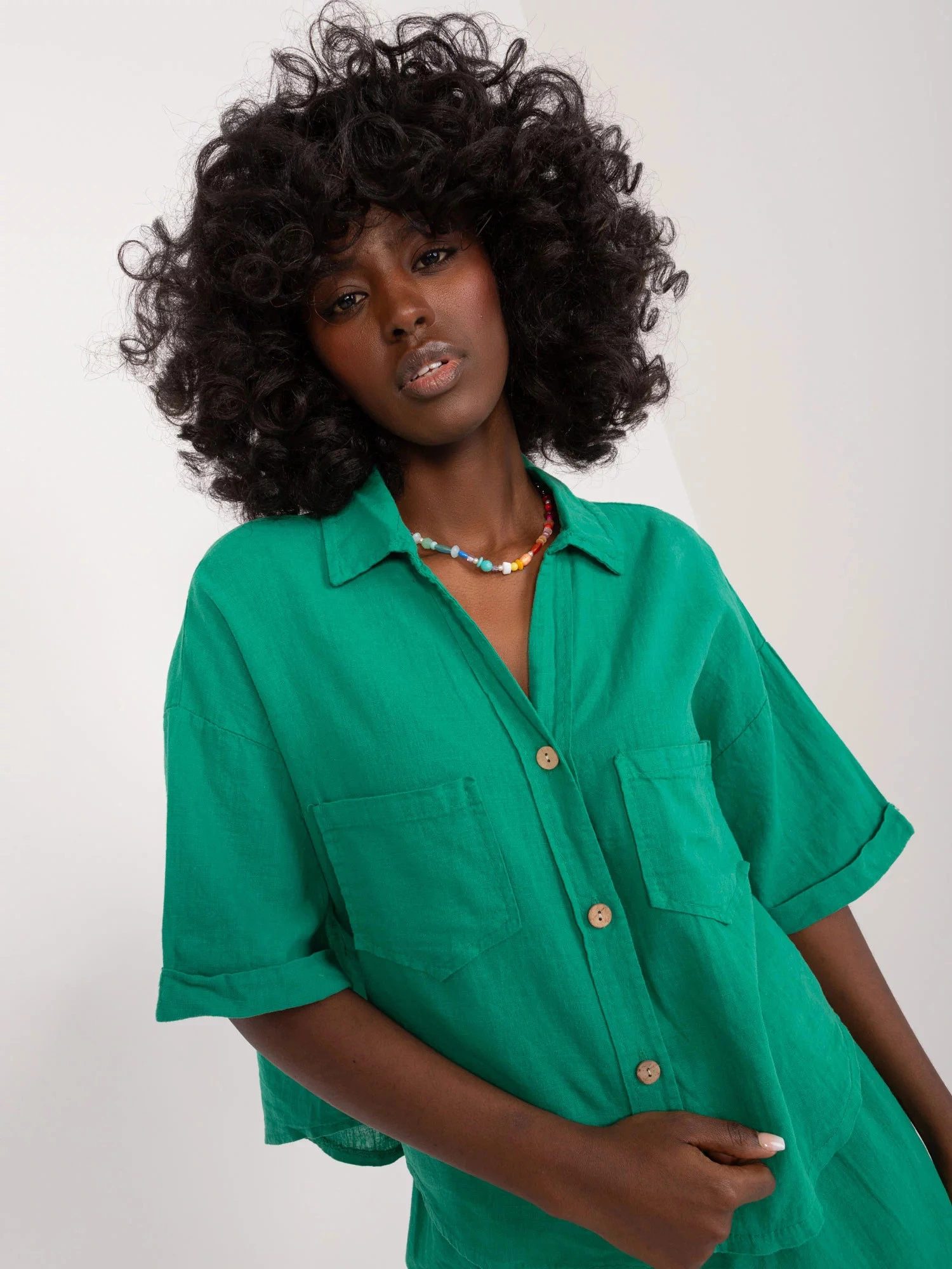 Damska krótka koszula zapinana na guziki z kieszeniami na piersi.