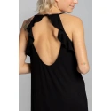 Koszulka z falbankami jest wykonana z miękkiej, elastycznej tkaniny wiskozowej i ma pasek spaghetti z falbankami, wycięcie na plecach i haft wilka na piersi.