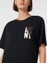 Damska koszula nocna z logo DKNY. Koszulka ma okrągły dekolt i luźny krój.