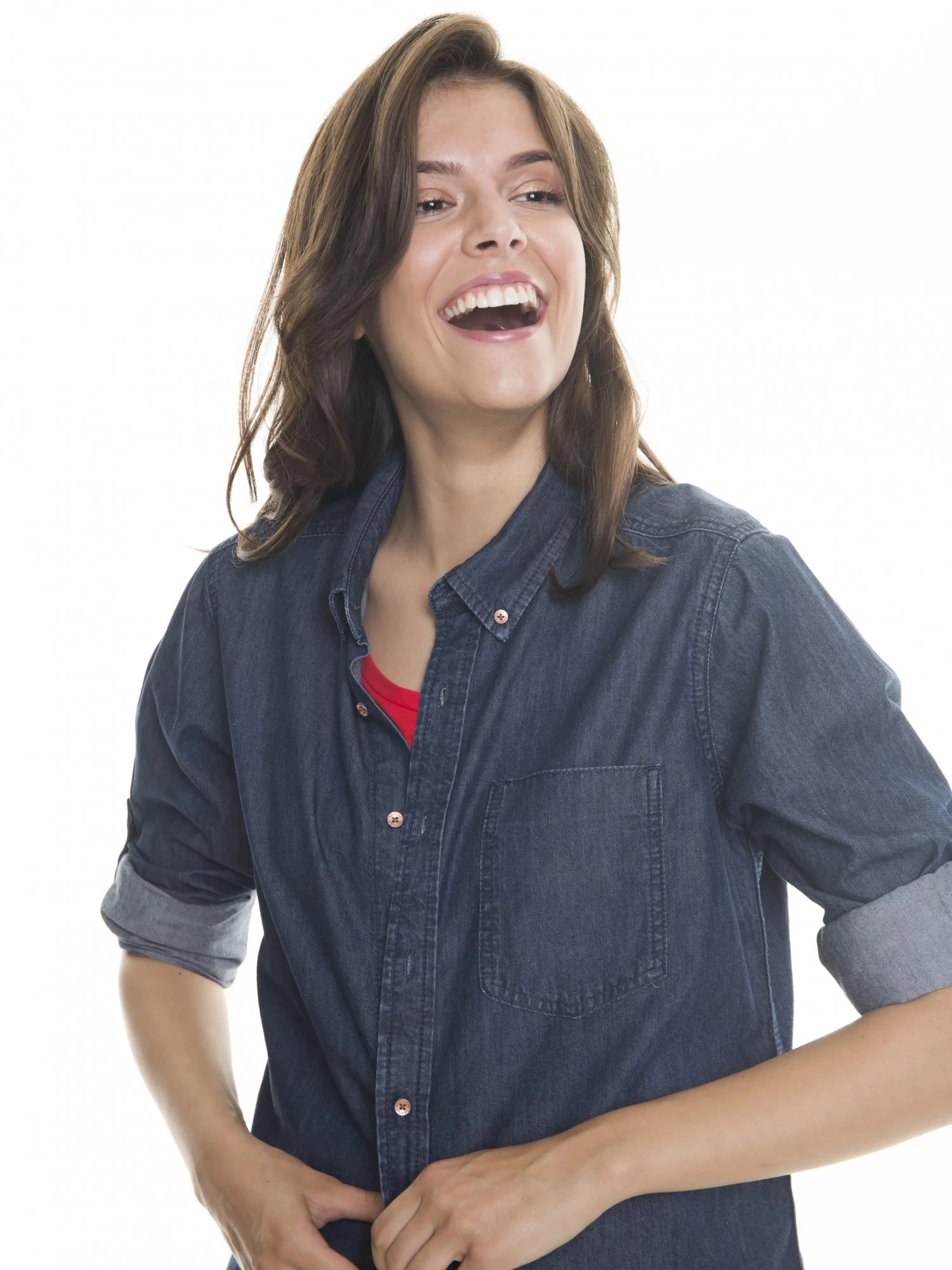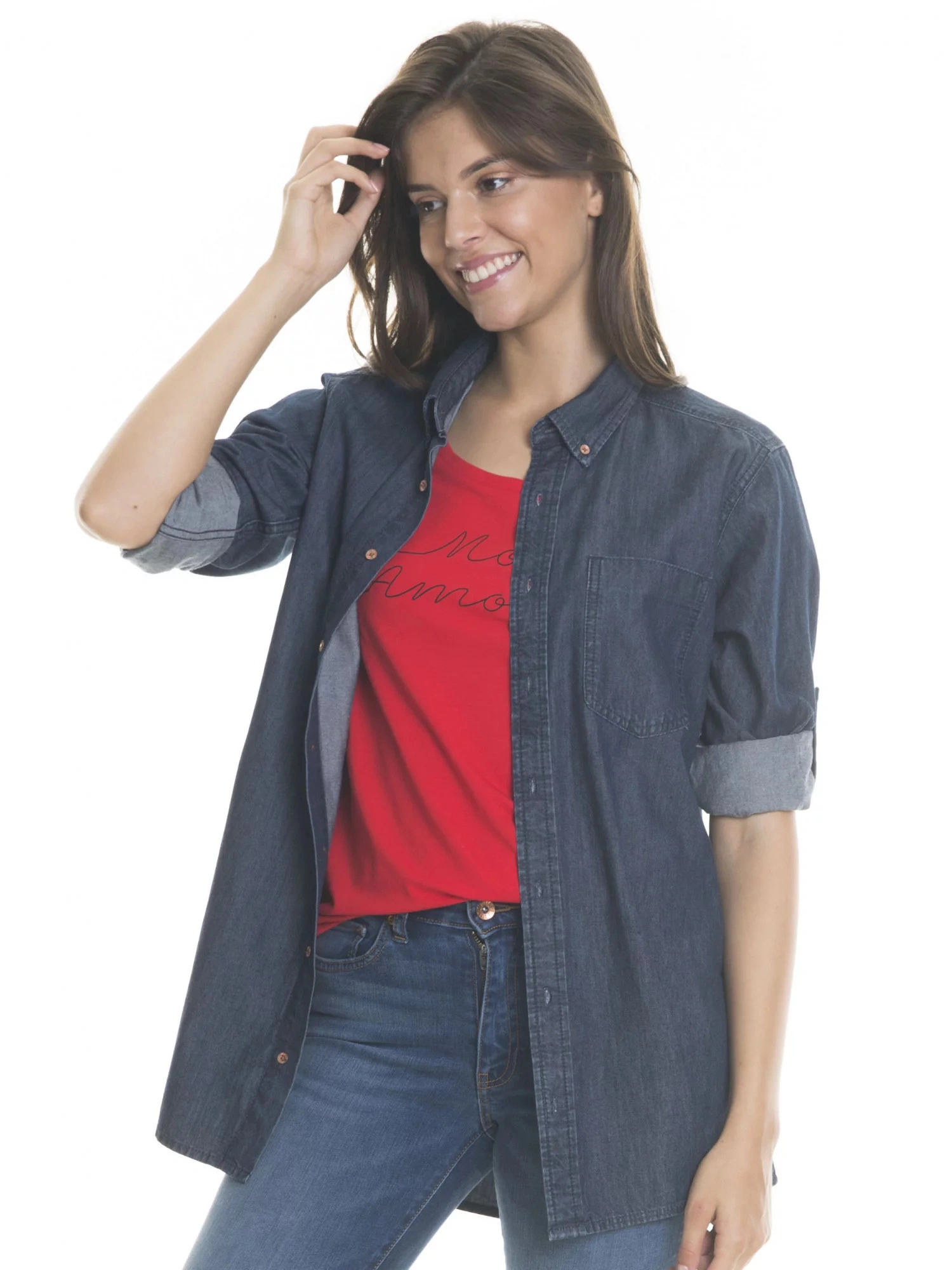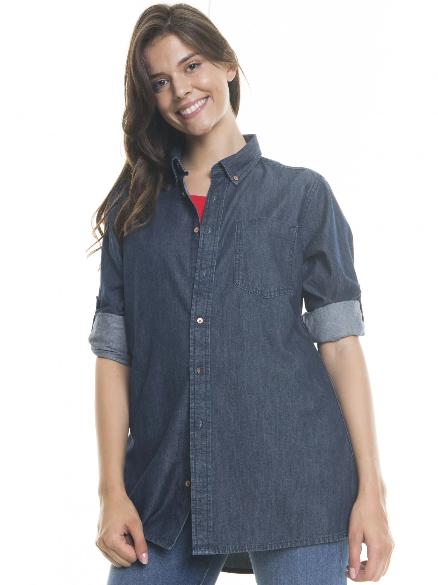 dżinsowa koszula, która nigdy nie wychodzi z mody kołnierzyk zapinany na guziki kieszeń na piersi, plisa zapinana na guziki, długie rękawy, mankiet zapinany na guziki, podwinięty dół, krój oversize