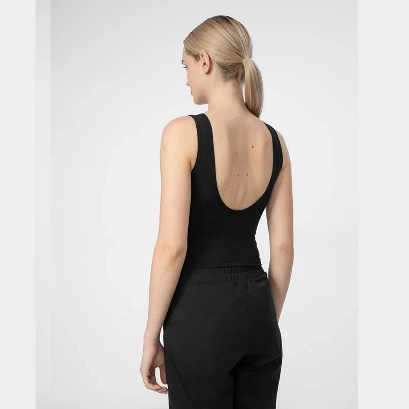 Właściwości: Damska koszulka bez rękawów 4F. Głębokie wycięcie na plecach. Dopasowany fason.