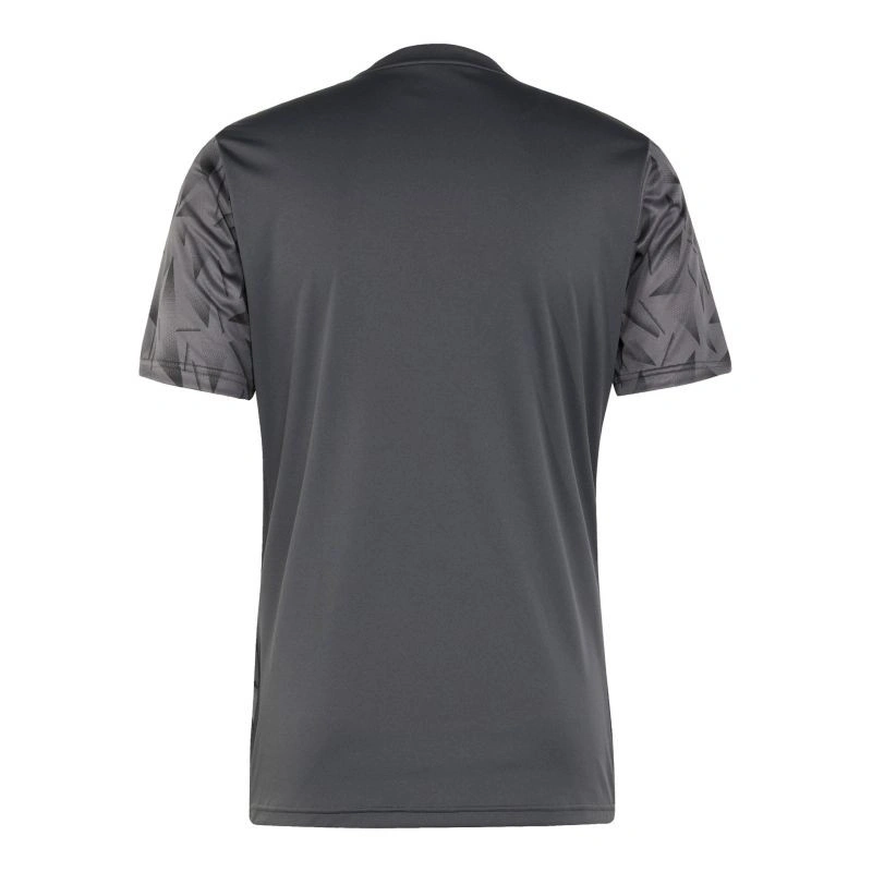 subtelny geometryczny wzór z przodu tej koszulki junior sięga do klasycznych zestawów adidas z końca lat 80.