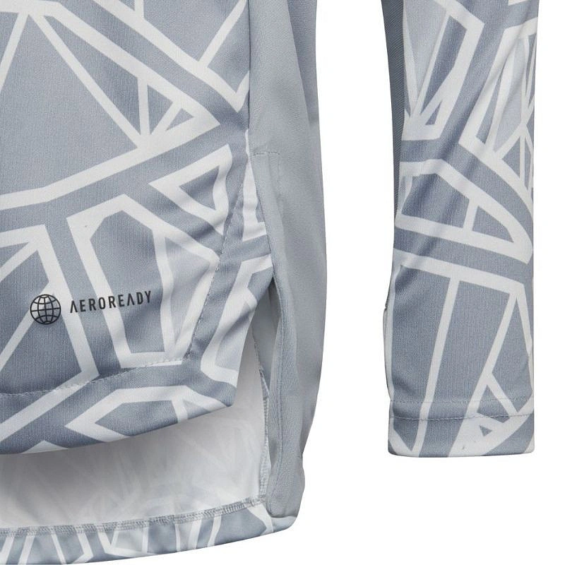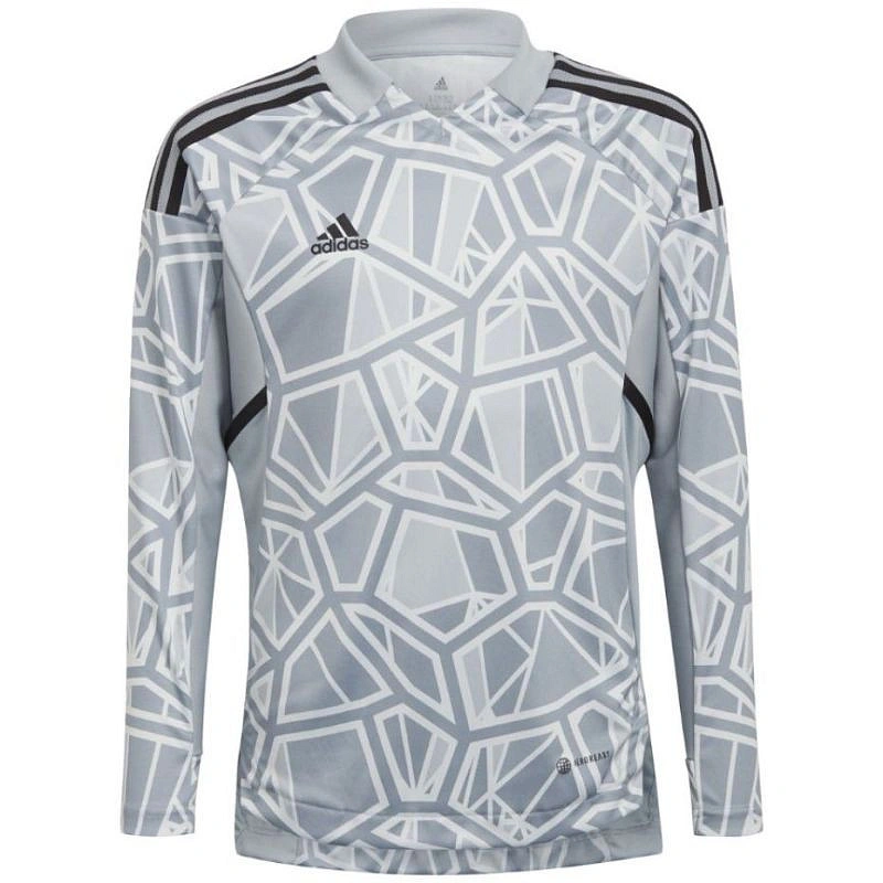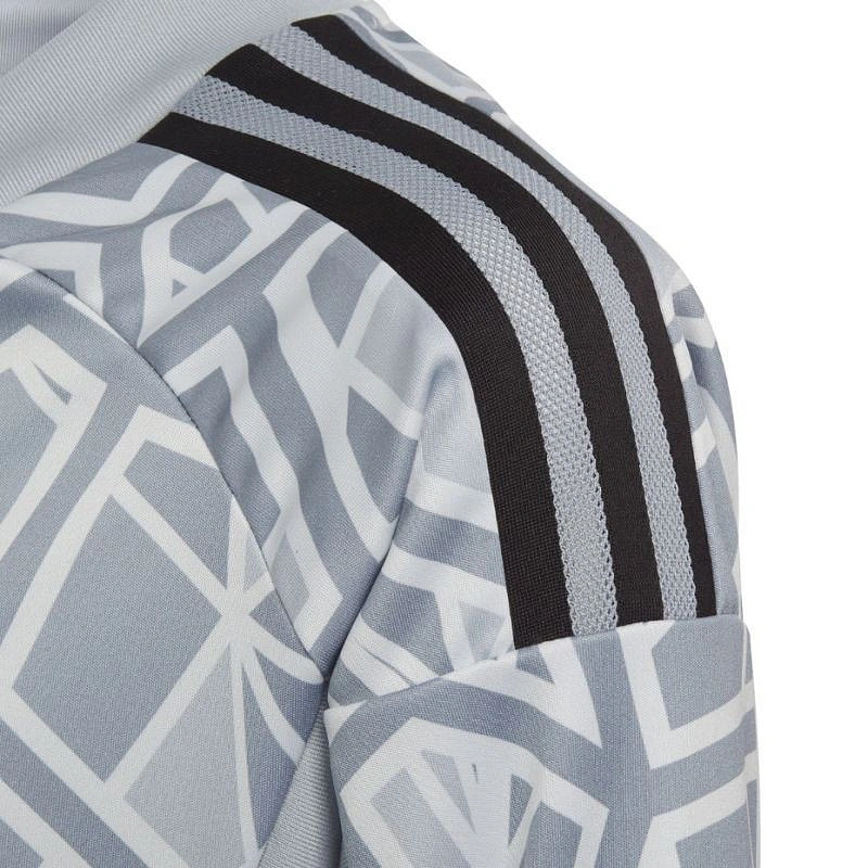 Koszulka bramkarska dla dzieci adidas Condivo 22 Long Sleeve Jersey szara HB1646 Koszulka bramkarska adidas przeznaczona dla dzieci pozwoli podnieść skuteczność obrony. Szybkoschnący materiał. Technologia Aeroready wentyluje ciało i odprowadza wilgoć. Regularny krój. Kontrastowa grafika. Wydłużony tył. Niewielkie rozcięcia po bokach. Dekolt w serek. Wstawki ze ściągacza na rękawach i pod pachami. Paski na ramionach. Nieco krótsze rękawy. Niewielkie logo. Materiał: 100% poliester z recyklingu