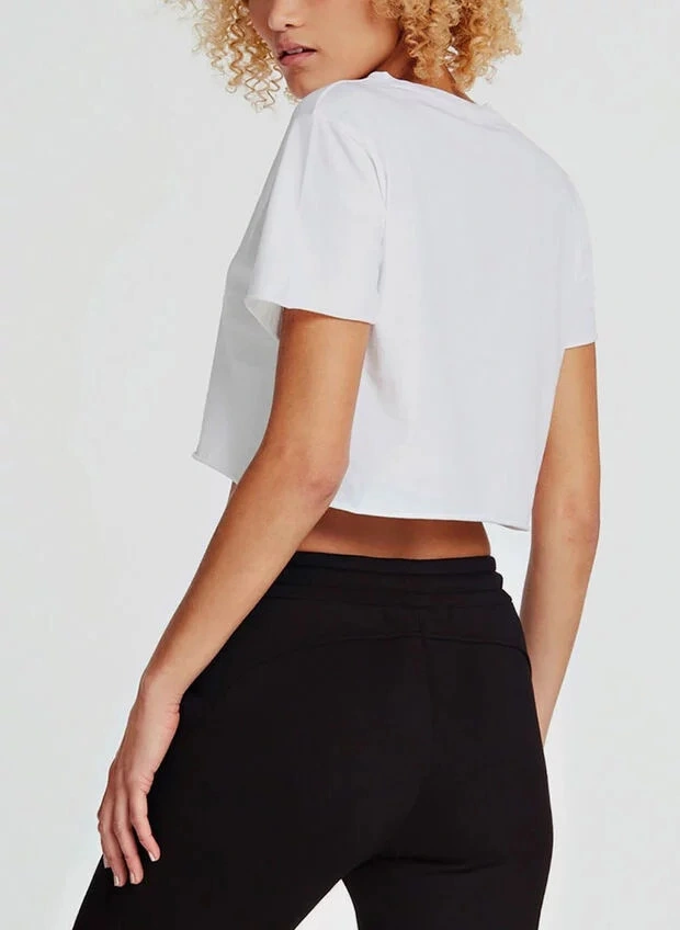 Stylowy T-shirt damski Guess - krótki rękaw - domyślny napis z przodu - okrągły dekolt Skład mater