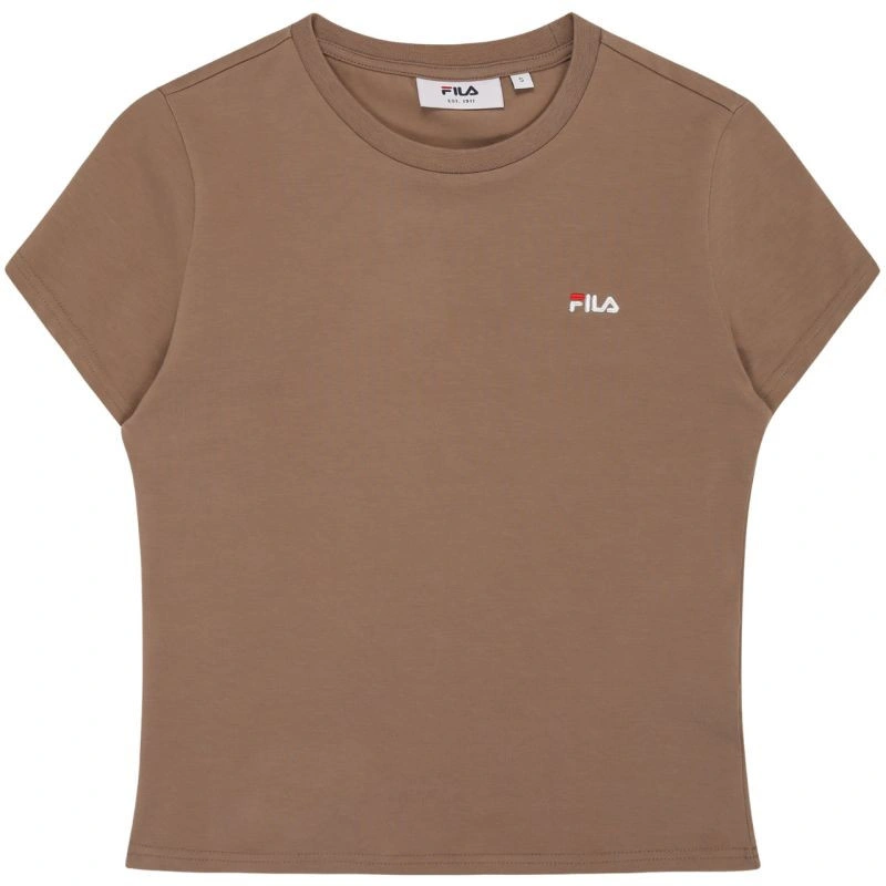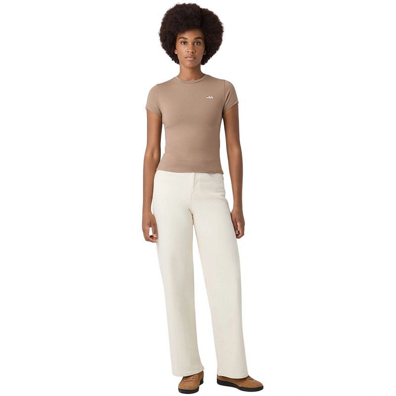 Koszulka damska Fila Trivero beżowa FAW1205 70008 T-shirt damski Fila sprawdzi się na co dzień. Niewielkie, wyszywane logo. Dopasowany, taliowany krój. Miękki materiał. Materiał: 93% bawełna, 7% elastan