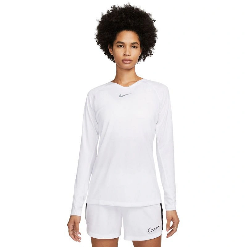 Koszulka damska Nike Dri-FIT Park First Layer biała AV2610 100 Damska koszulka z długim rękawem Nike jest świetnym rozwiązaniem jako pierwsza warstwa odzieży w chłodne dni. Zastosowana technologia Dri-FIT gwarantuje suchość i komfort podczas aktywności fizycznej, za sprawą skutecznego odprowadzania wilgoci na zewnątrz. Przylegający krój z raglanowymi rękawami. Otwory na kciuki, które nie są widoczne, kiedy nie są używane. Logo Swoosh. Materiał: 100% poliester