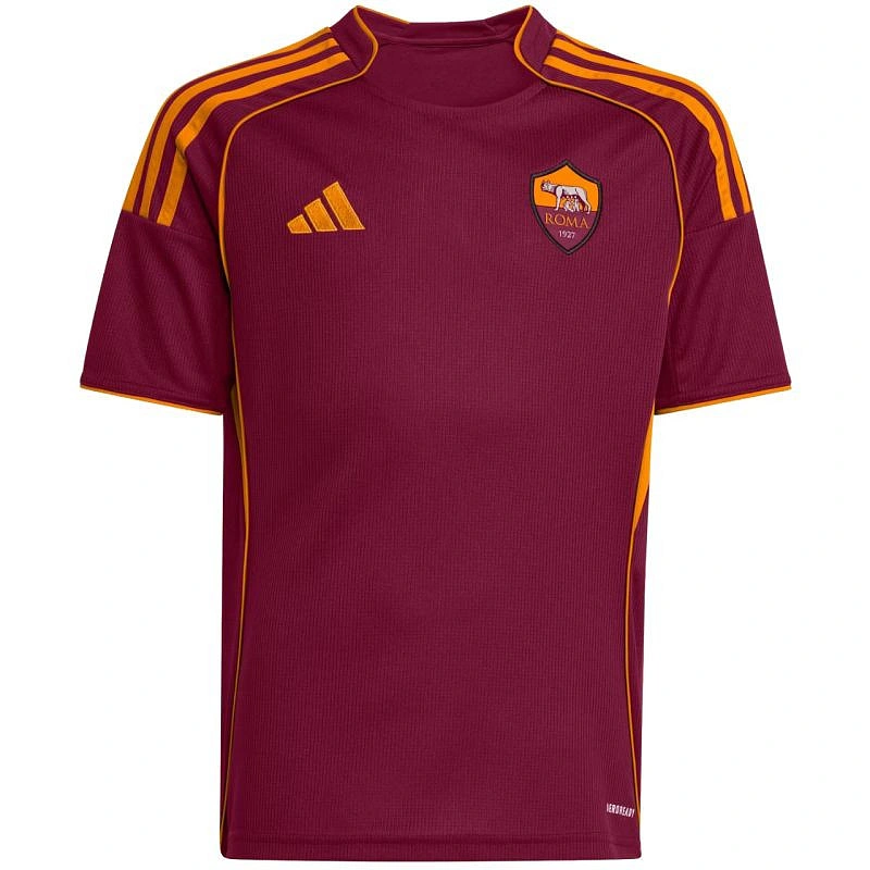 Koszulka dla dzieci adidas AS Roma 25/26 Home bordowa JX2613 Piłkarska koszulka dla młodych kibiców AS Roma. Koszulka dla dzieci adidas sprawdzi się podczas treningów i na co dzień. Standardowy krój. Zaokrąglony dekolt. Technologia Aeroready. Naszyte godło AS Roma. Materiał: 100% poliester z recyklingu