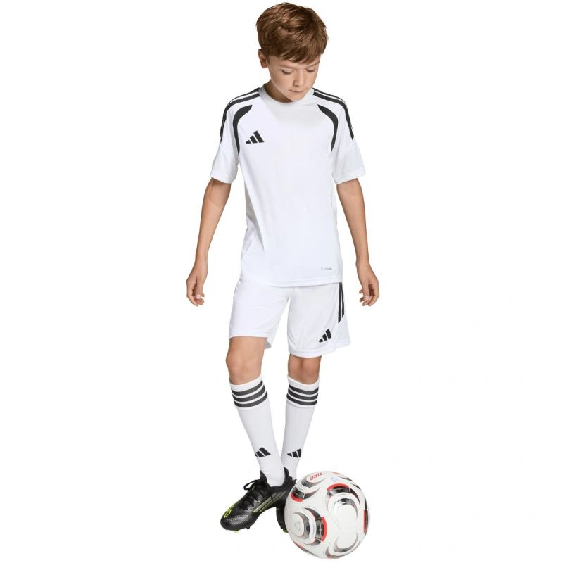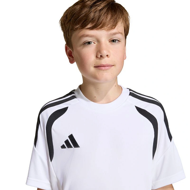 Koszulka dla dzieci adidas Tiro 26 League Jersey biała KB1312 Koszulka dla dzieci adidas sprawdzi się podczas rozgrywek piłkarskich. Regularny krój. Okrągły dekolt. Panele z siateczki. Technologia Climacool. Włókna powstały w procesie recyklingu. Materiał: 100% poliester z recyklingu