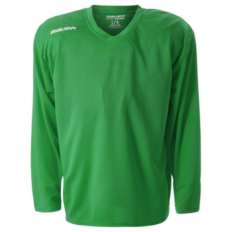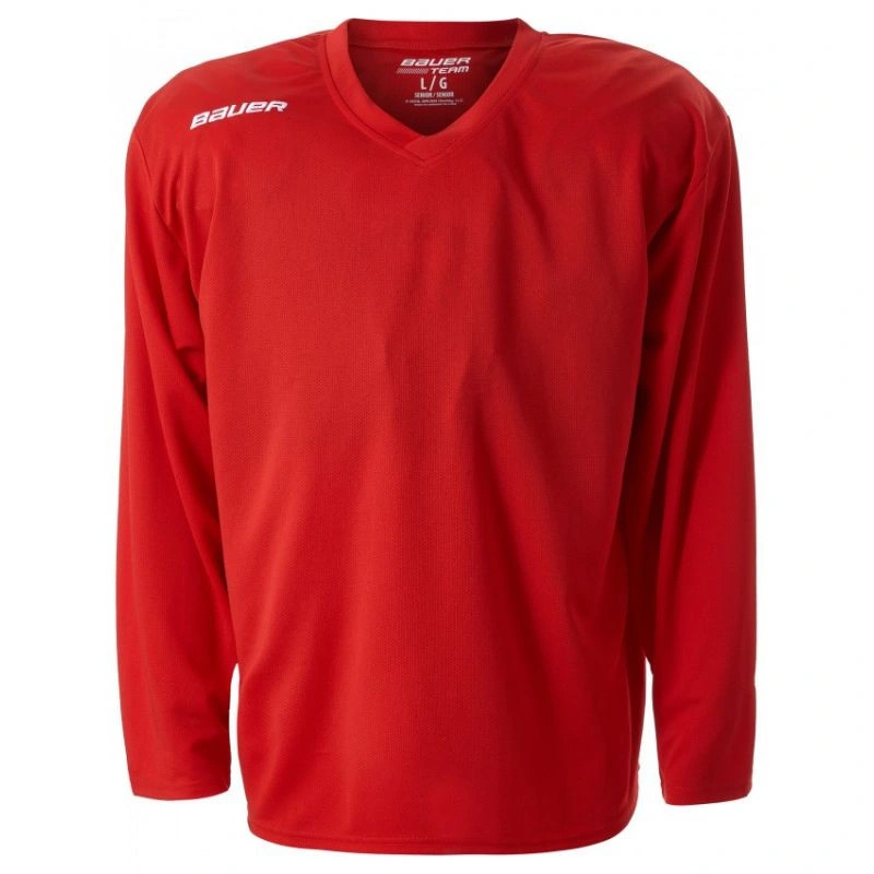 Koszulka hokejowa Bauer Sr Koszulka lekka i trwała, idealna do treningu, ale może być używana w czasie gry. Posiada dużo miejsca na ewentualny nadruk. Haftowane logo Bauer na prawym obojczyku. 100% polyester 170 g/m2 Wzmocnione szwy V-neck Przyjemny w dotyku Przód koszulki posiada logo po prawej stronie Bauer Tył koszulki bez żadnego loga, można nadrukować logo drużyny Rozmiar: Senior