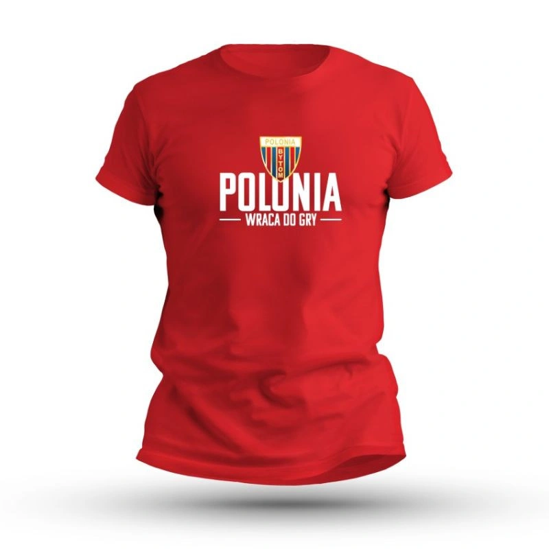 Koszulka Polonia Bytom Wraca do Gry Koszulka Polonia Bytom Wraca do Gry to wyjątkowa propozycja dla kibiców, którzy chcą z dumą podkreślić powrót swojego klubu do gry. Główne cechy: Unikalny design: Koszulka z herbem Polonii Bytom oraz napisem „POLONIA WRACA DO GRY” w białym kolorze, nadająca dynamicznego i sportowego charakteru. Wysoka jakość materiału: Miękka, oddychająca tkanina (85% bawełna, 15% wiskoza) gwarantuje komfort noszenia na co dzień i podczas aktywności. Gramatura: 190 g/m² – lekka, a jednocześnie solidna konstrukcja zapewniająca trwałość. Koszulka Polonia Bytom Wraca do Gry to idealny wybór dla każdego fana, który chce wspierać swój klub.