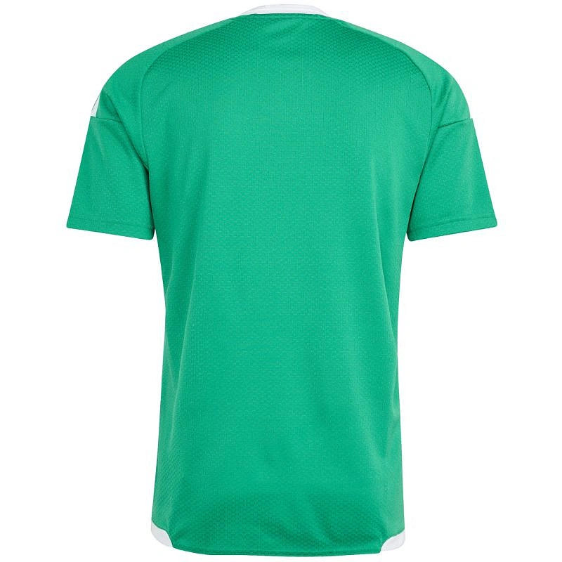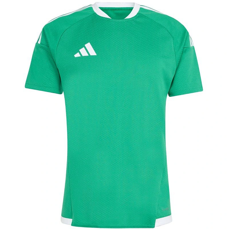 Koszulka męska adidas Tiro 26 Competition Match Jersey zielona KA6235 Koszulka męska adidas sprawdzi się podczas rozgrywek piłkarskich. Dopasowany krój. Okrągły dekolt z delikatnym kołnierzykiem. Siateczkowe panele. Technologia Climacool odprowadza i rozprasza pot. Włókna powstały w procesie recyklingu. Logo naniesione termotransferem. Paski na ramionach. Materiał: 100% poliester z recyklingu