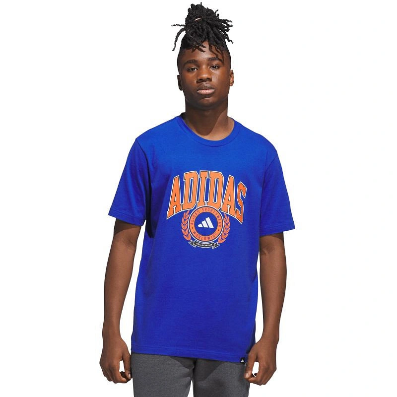 Koszulka męska adidas Varsity Crest niebieska JN2515 Męska koszulka adidas inspirowana akademickim stylem sprawdzi się na co dzień. Miękka konstrukcja z bawełnianej tkaniny. Standardowy krój. Zaokrąglony dekolt. Materiał: 100% bawełna