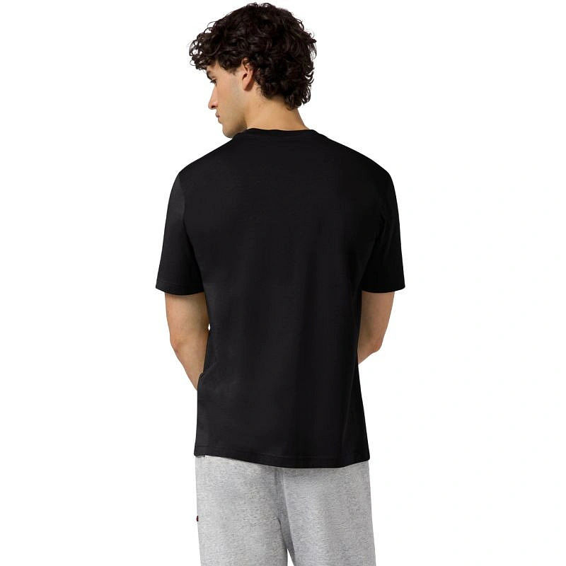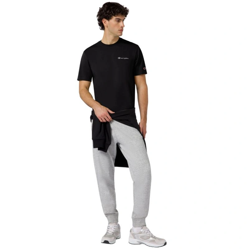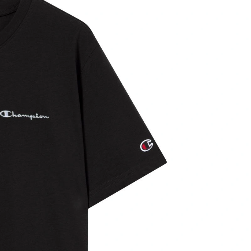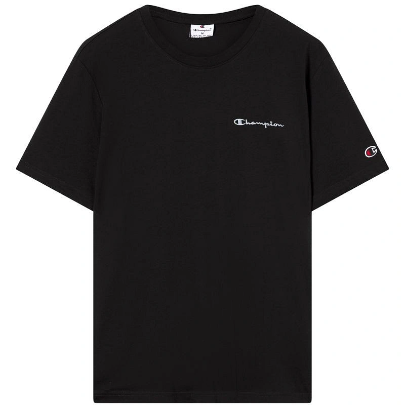 Koszulka męska Champion SS Tee czarna 221798 KK001 Koszulka dla mężczyzn Champion sprawdzi się podczas codziennego użytkowania. Standardowy krój. Niewielkie logo marki Champion na piersi oraz lewym rękawie. Zaokrąglony dekolt ze ściągaczem. Miękka tkanina. Materiał: 100% bawełna