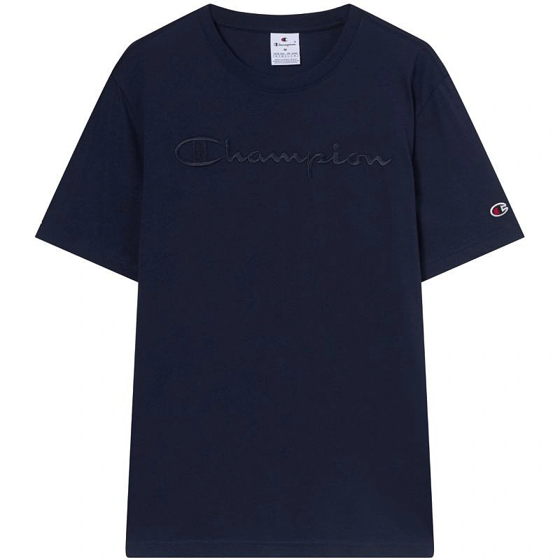 Koszulka męska Champion SS Tee granatowa 220273 BS501 Koszulka dla mężczyzn Champion sprawdzi się podczas codziennego użytkowania. Regularny krój. Niewielkie logo na rękawie. Duże logo na klatce piersiowej. Miękki w dotyku materiał. Materiał: 100% bawełna