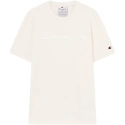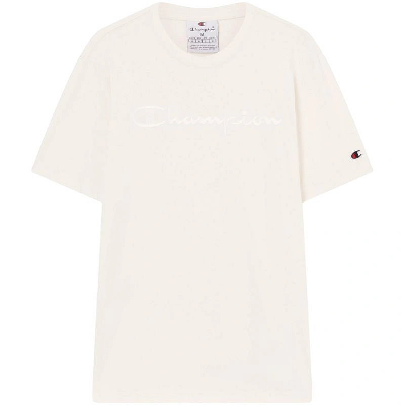Koszulka męska Champion SS Tee biała 220273 WW056 Koszulka dla mężczyzn Champion sprawdzi się podczas codziennego użytkowania. Regularny krój. Niewielkie logo na rękawie. Duże logo na klatce piersiowej. Miękki w dotyku materiał. Materiał: 100% bawełna