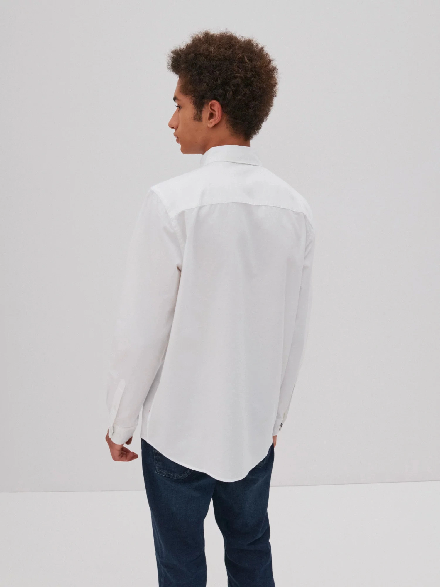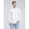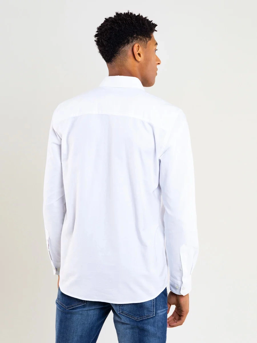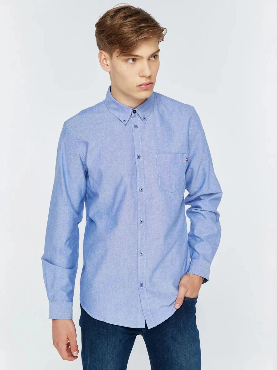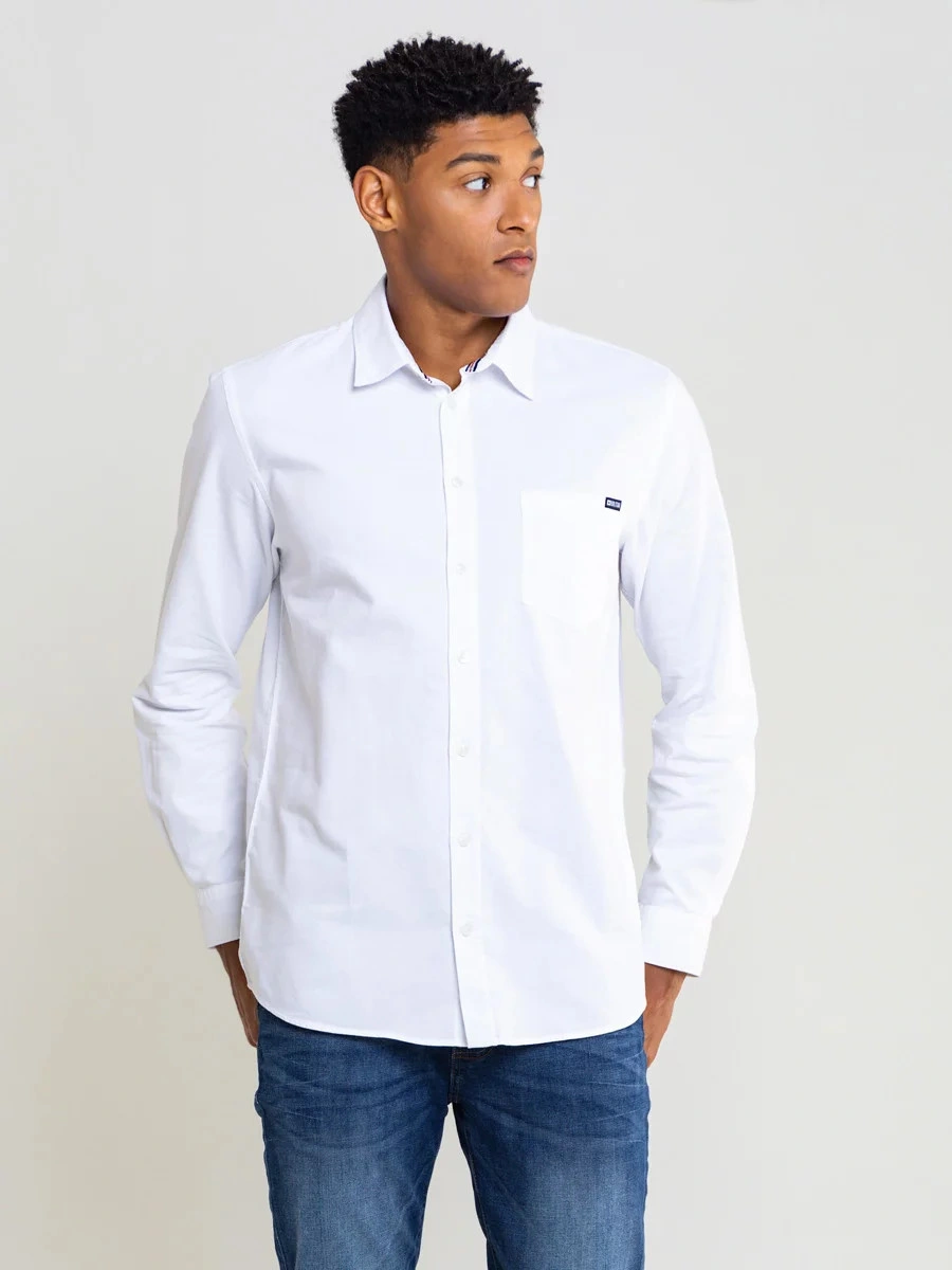 męska koszula oxford o klasycznym kroju, jednolity kolor, zapięcie na guziki, długie rękawy, mankiety zapinane na guziki, kieszeń na piersi z markową naszywką na kołnierzyku, regularny krój, wykonana z oddychającej bawełny wysokiej jakości