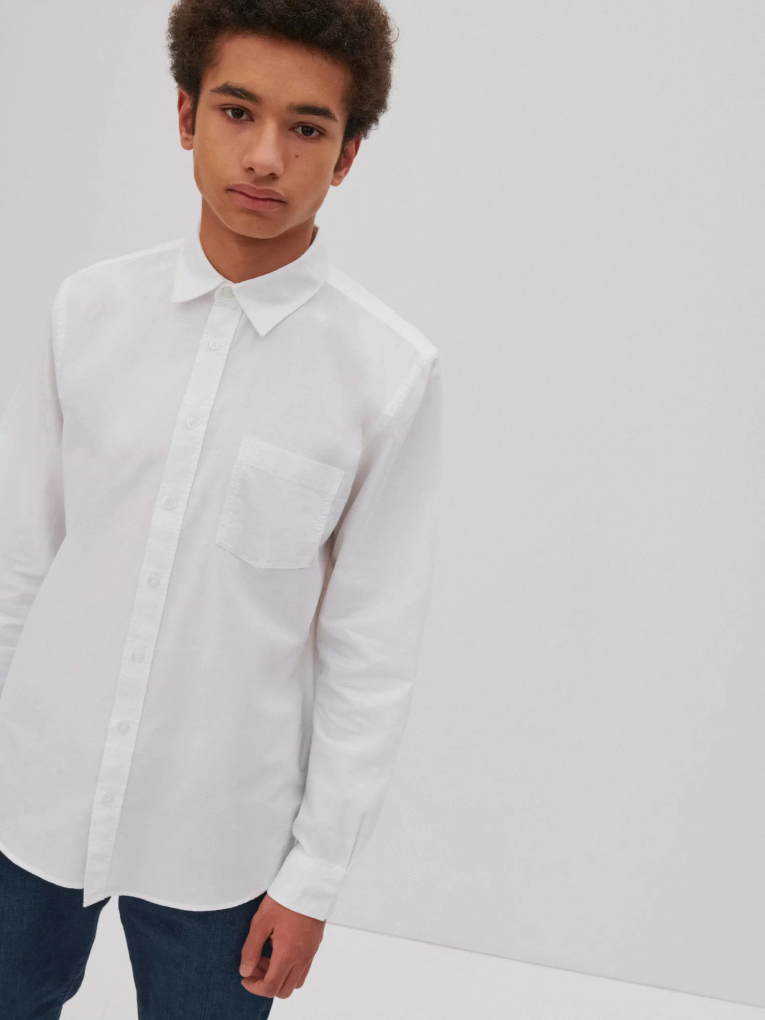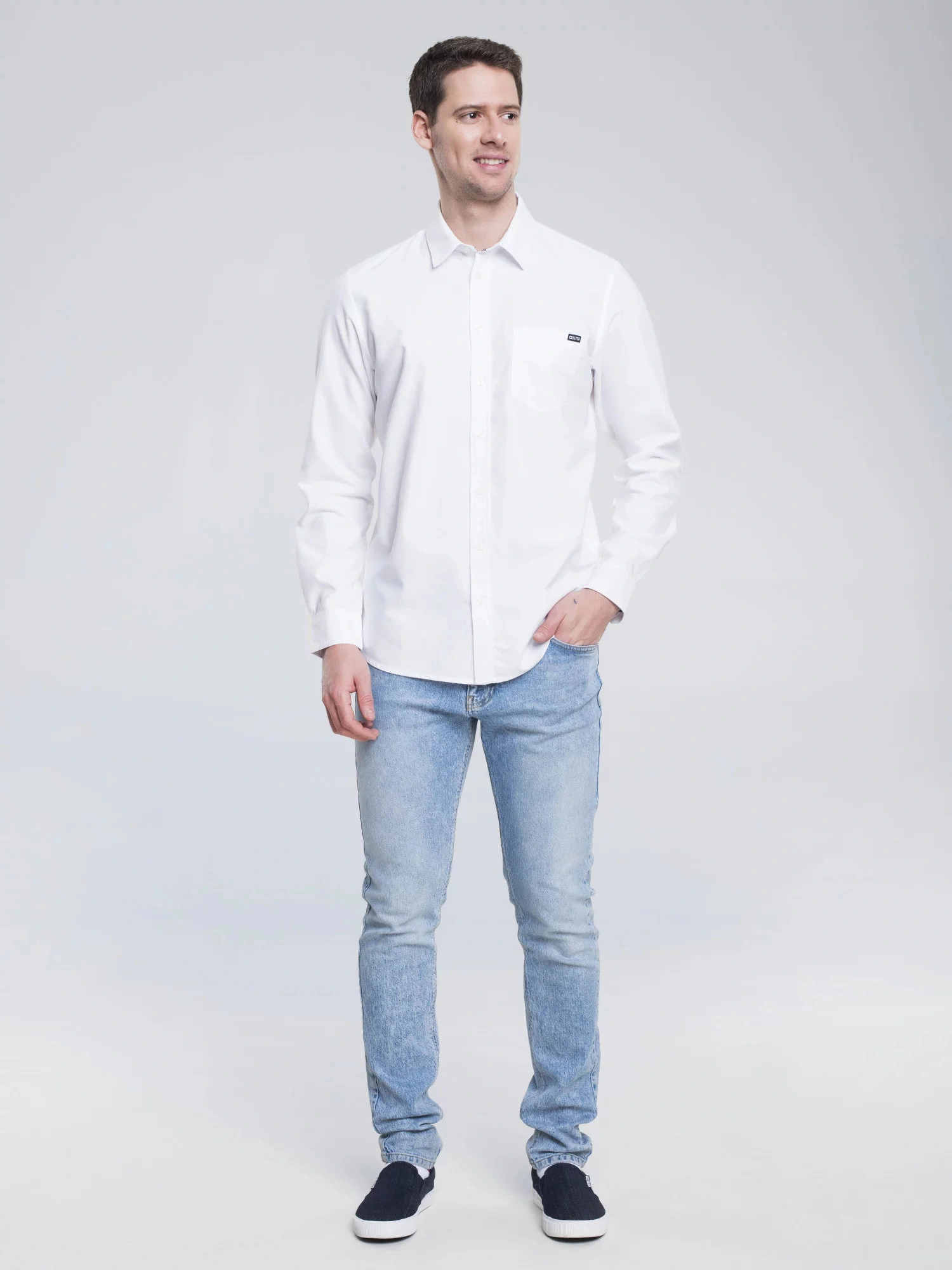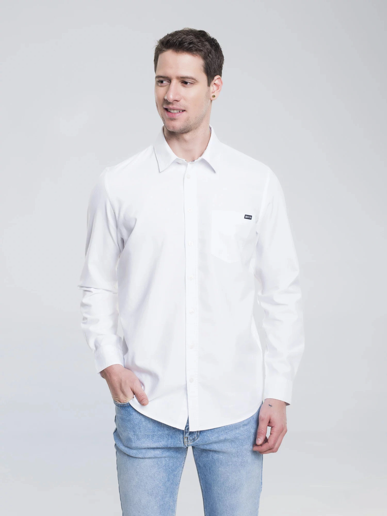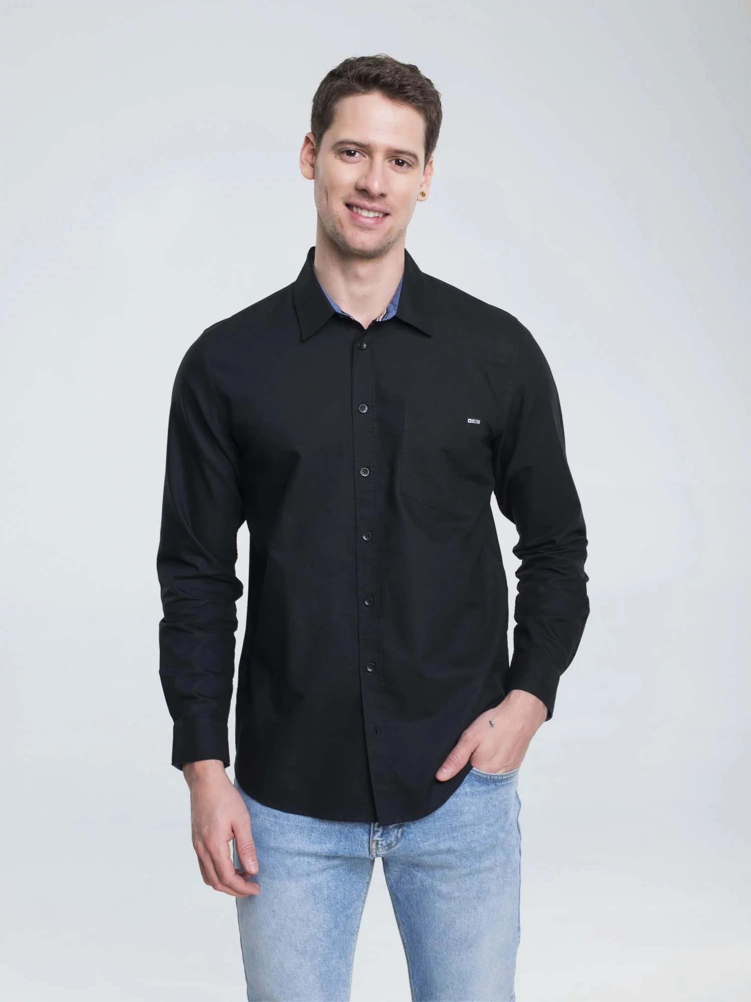 męska koszula oxford o klasycznym kroju, jednolity kolor, zapięcie na guziki, długie rękawy, mankiety zapinane na guziki, kieszeń na piersi z markową naszywką na kołnierzyku, regularny krój, wykonana z oddychającej bawełny wysokiej jakości
