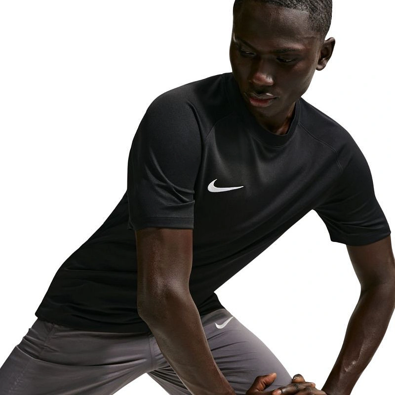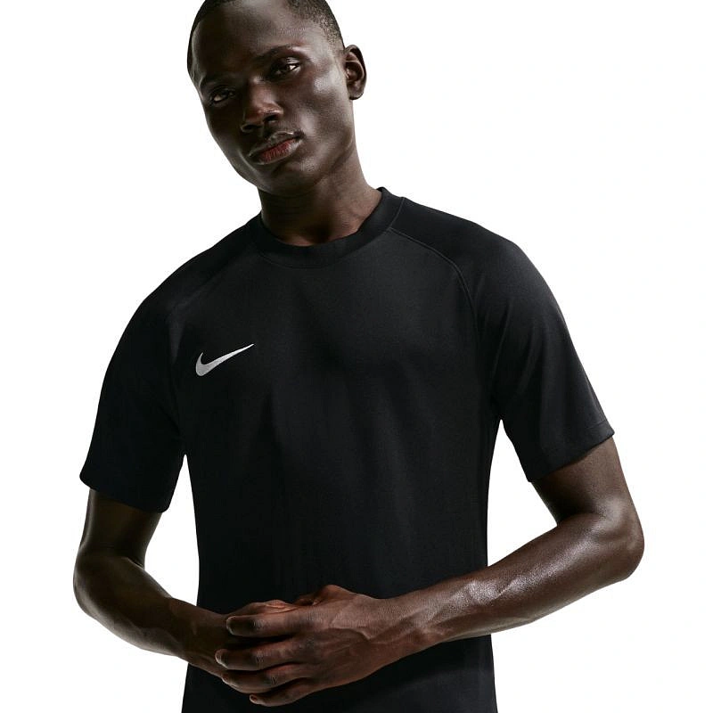 Koszulka męska Nike Dri-Fit Park VIII czarna HV8173 010 Koszulka dla mężczyzn Nike sprawdzi się podczas treningów. Lekki materiał z technologią Dri-FIT odprowadza wilgoć na zewnątrz, pozostawiając uczucie świeżości. Tylna część z perforowanej tkaniny. Dopasowany krój z raglanowymi rękawami i okrągłym dekoltem. Wyszywane logo brandu na piersi. Sięgając po koszulkę Nike, w produkcji której wykorzystano poliester z recyklingu, przyczyniasz się do ochrony naturalnych zasobów środowiska. Materiał: 100% poliester z recyklingu