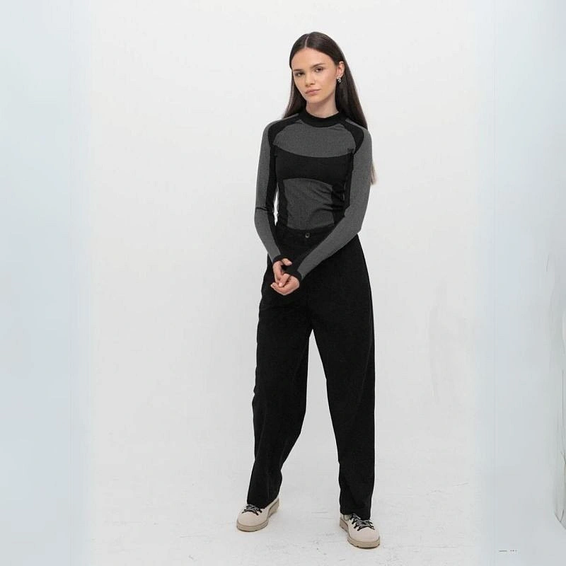 - Płaskie szwy minimalizują powstawanie otarć. Dekolt wykończono prążkowaną stójką, a rękawy i dół elastyczną gumką.
