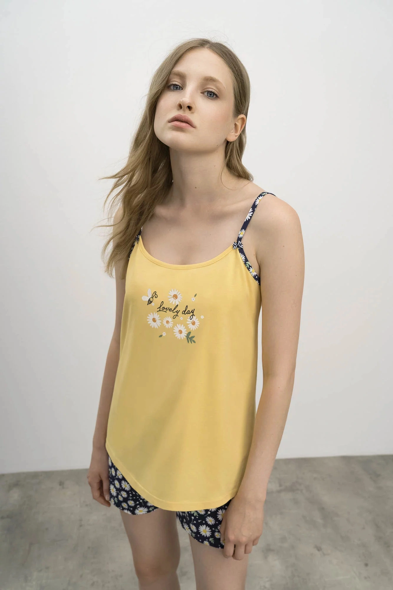 Krótka piżama damska babydoll 16203 - Vamp S żółto-niebieski