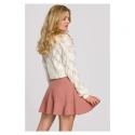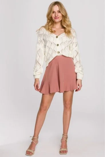 Mini spódniczka z ciekawą nakładką z przodu. Delikatna falbana na dole dodaje oryginalności. Spódnica zapinana jest na kryty zamek błyskawiczny. Idealna jako baza stylizacji, pasuje zarówno do eleganckich wersji z marynarką, jak i bardziej casualowych ze swetrem i sneakersami.