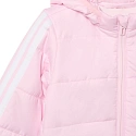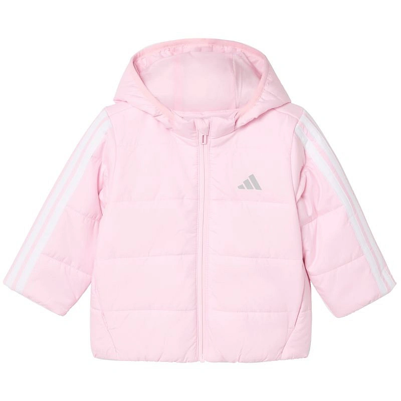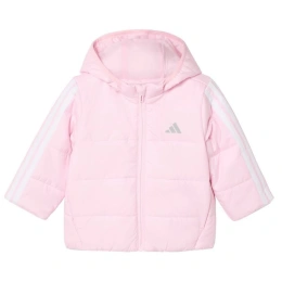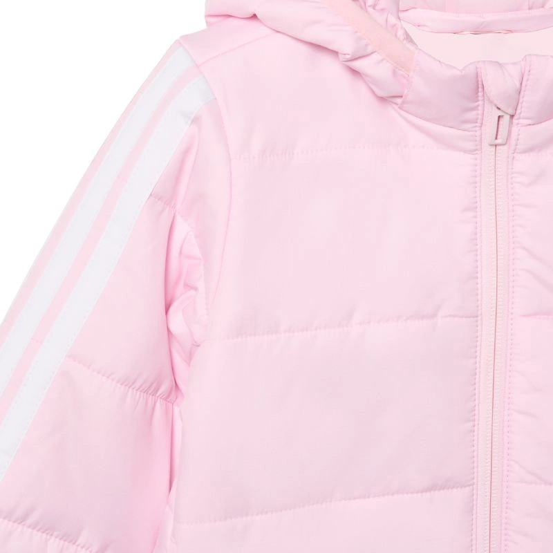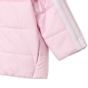 2 Kurtka dla dzieci adidas sprawdzi się w zimowe dni. Standardowy krój. Syntetyczne wypełnienie rozłożone w poziomych panelach w połączeniu z technologią Climawarm otula ciało ciepłem, jednocześnie oferując odprowadzenie nadmiaru wilgoci. Zamek na dalej długości. Odpinany kaptur bez regulacji. Odblaskowe detale. Materiał: 100% poliester z recyklingu