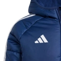 Kurtka dla dzieci adidas z piłkarskiej linii Tiro sprawdzi się również na co dzień. Syntetyczne wypełnienie równomiernie rozłożone w poziomych, szerokich panelach pomaga w utrzymaniu optymalnej temperatury ciała. Tradycyjny krój. Zamek na całej długości. Zapinane kieszenie boczne. Elastyczne wykończenie mankietów i dołu. Nieodpinany kaptur bez regulacji osadzony na wysokiej stójce. Paski na rękawach. Subtelne logo z przodu.