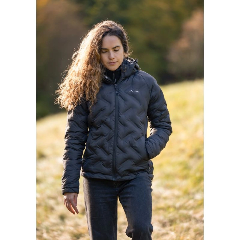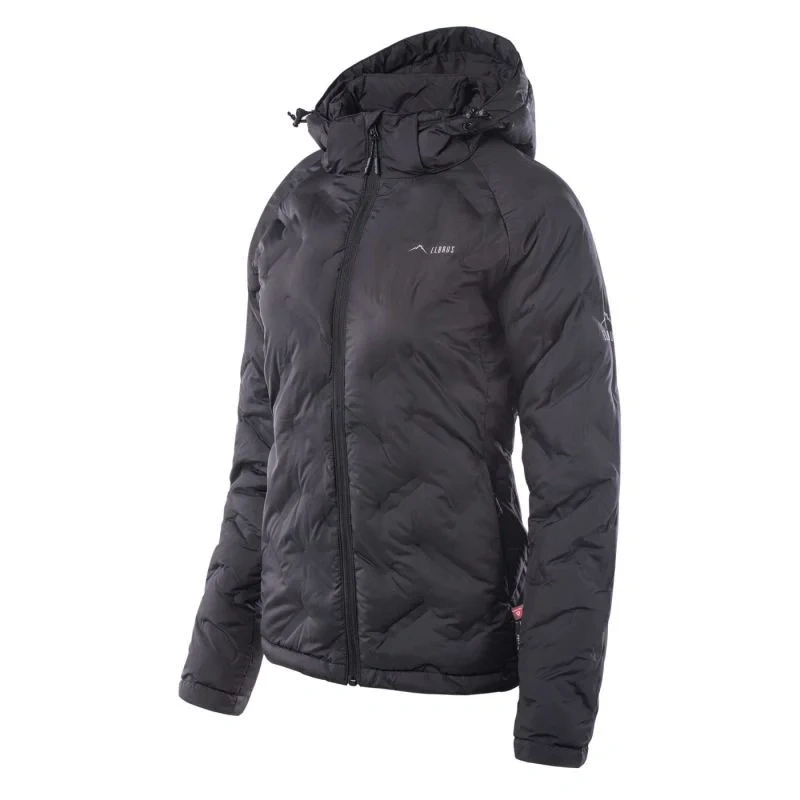 Właściwości: Damska kurtka Elbrus. Zapinana na zamek. Odpinany kaptur. Wodoodporna. Powłoka DWR. M