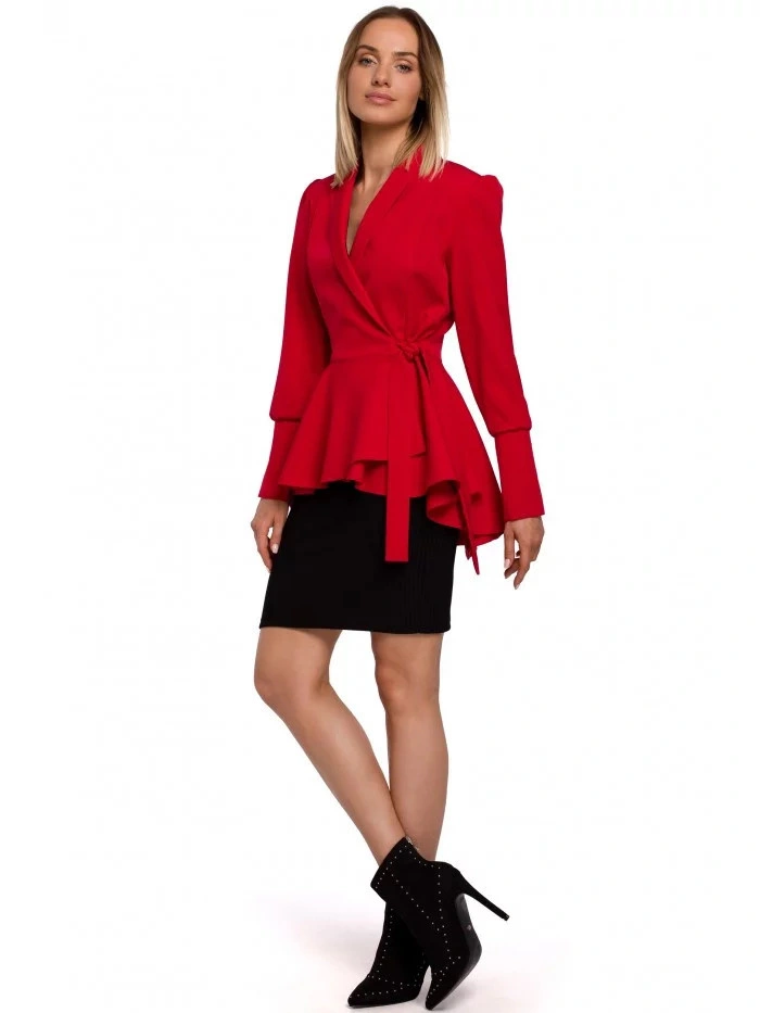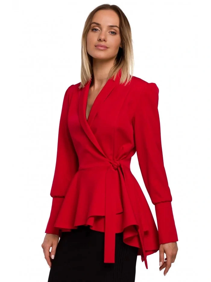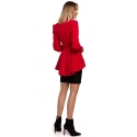 - długie rękawy z mankietami i rozcięciami oraz pasek wiązany z boku